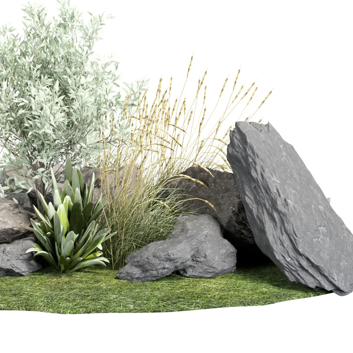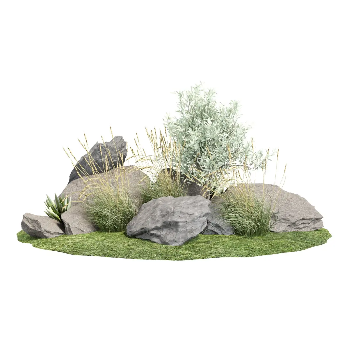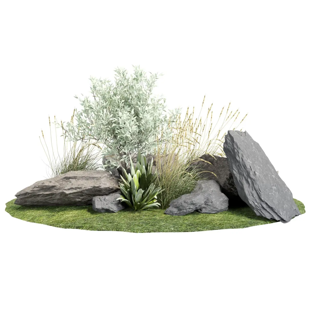 The set of stones with plants for decorating exteriors, adjoining territories and landscaping. The model includes: .MAX, .MTL, .OBJ files.