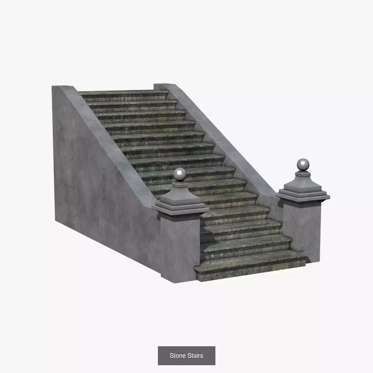 This pack includes 8 high quality 3D stair models made of stone and concrete, including stairs with railings and outdoor steps.