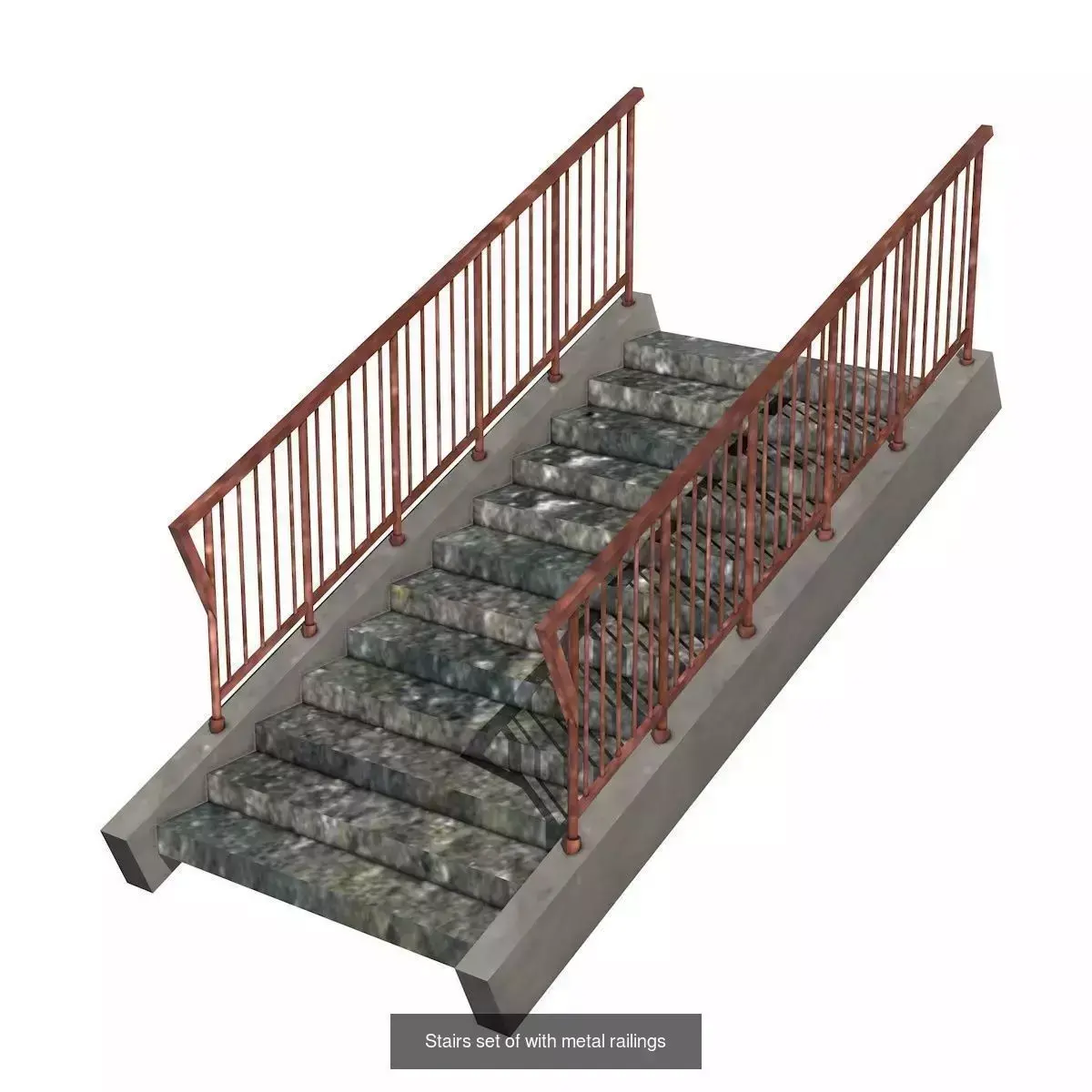 Pack includes:8 stair models,stone stairs and concrete stairs,outdoor stairs,stairs with metal railings.