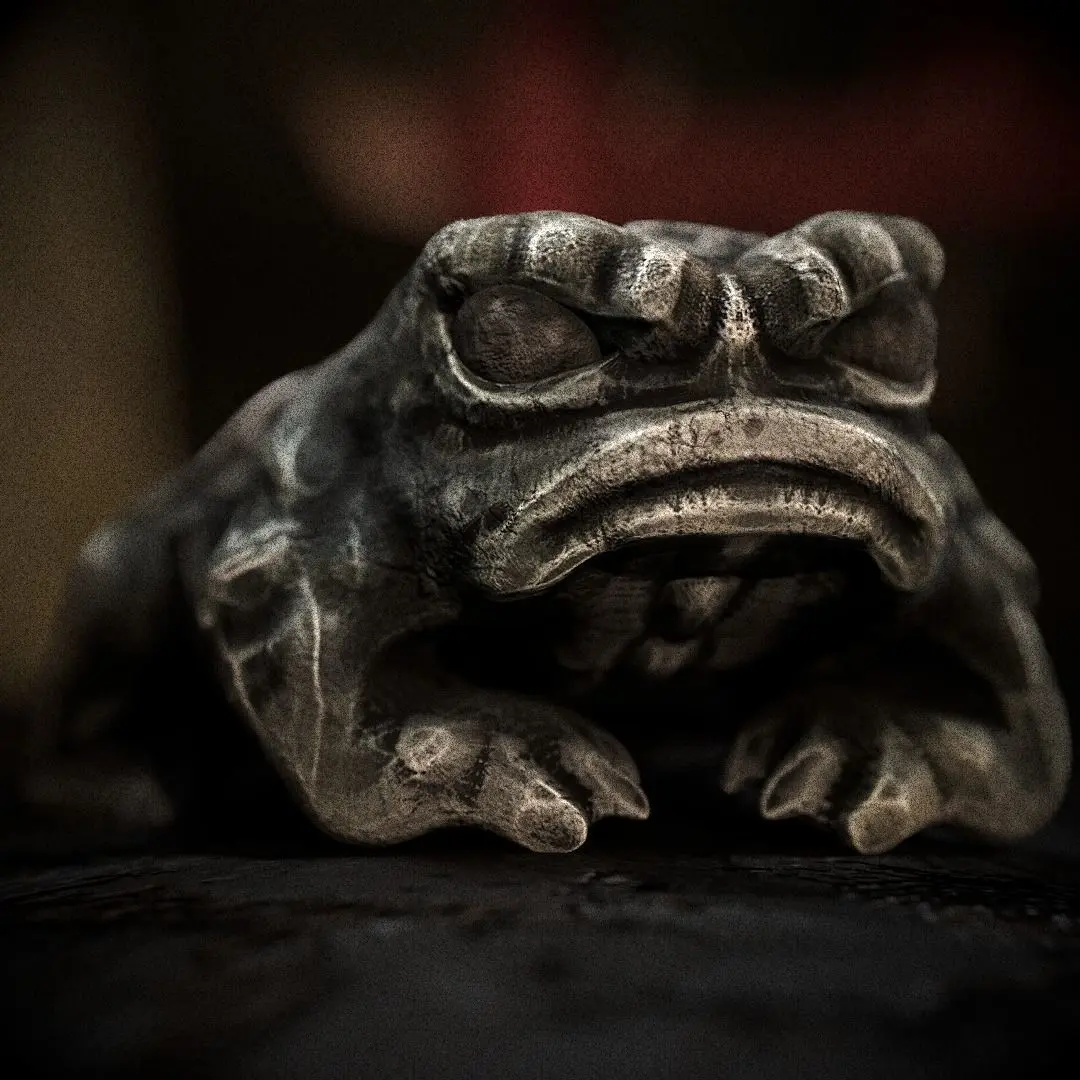 This frog statue can be placed near a temple or on a location and is the perfect addition to your project.