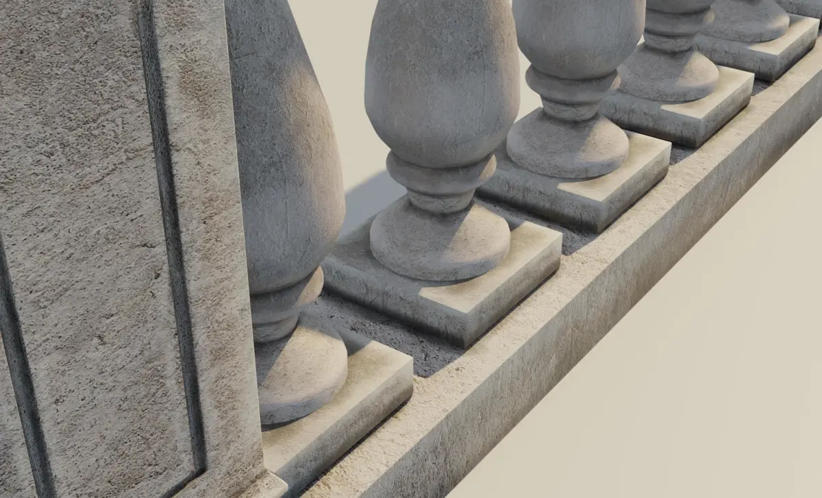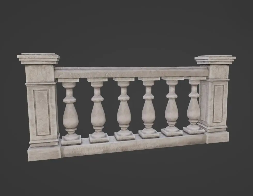 Low(ish) poly, Stone Balustrade Balcony, complete with full 2K textures. Realistic and ready for games and stonework architectural terrace renders. Clean architecture topology with 9769 Vertices and 9540 faces.