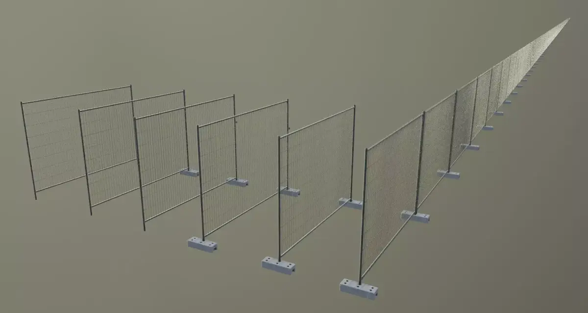 Hier ist ein Array-Modifikator-basierter Bauzaun mit Steinsockeln.