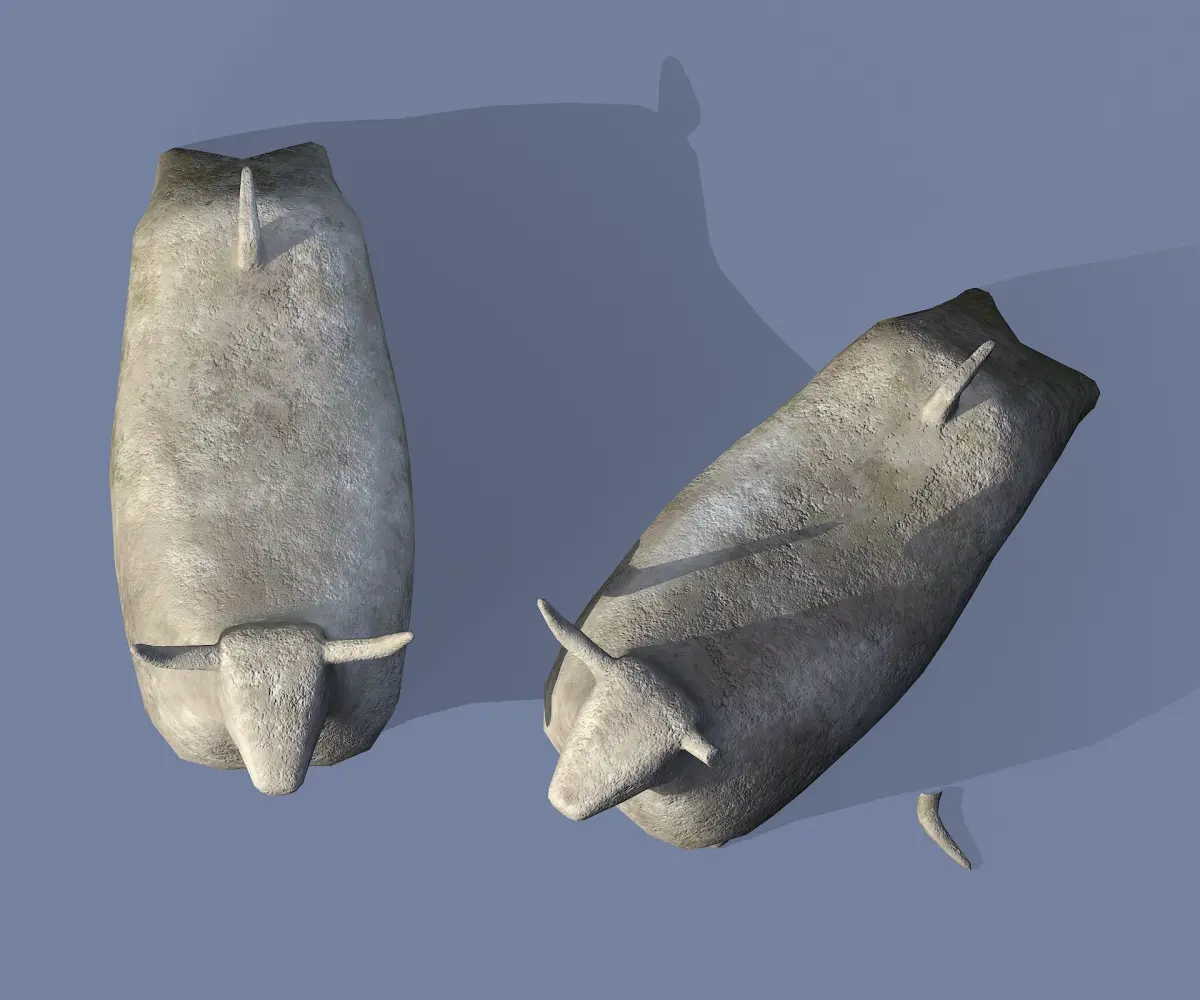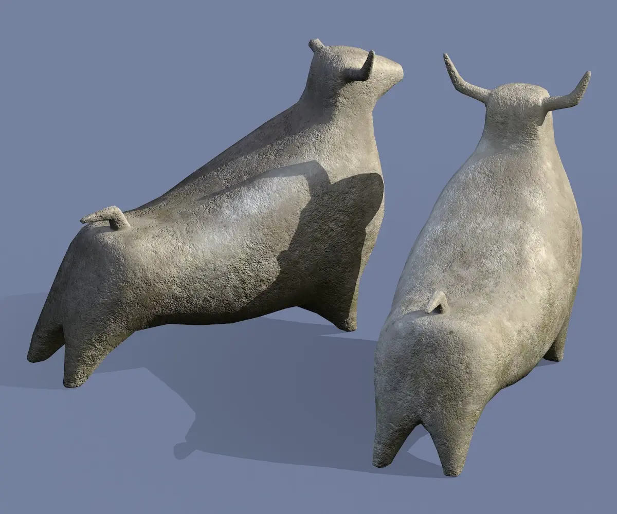 Hello! This is a set of 3d models of a stone statue of a bull (classic bull and a variation with a broken horn). Each model is in a separate file. Materials are set up in the blend file. Models are low poly, ready to be subdivided.