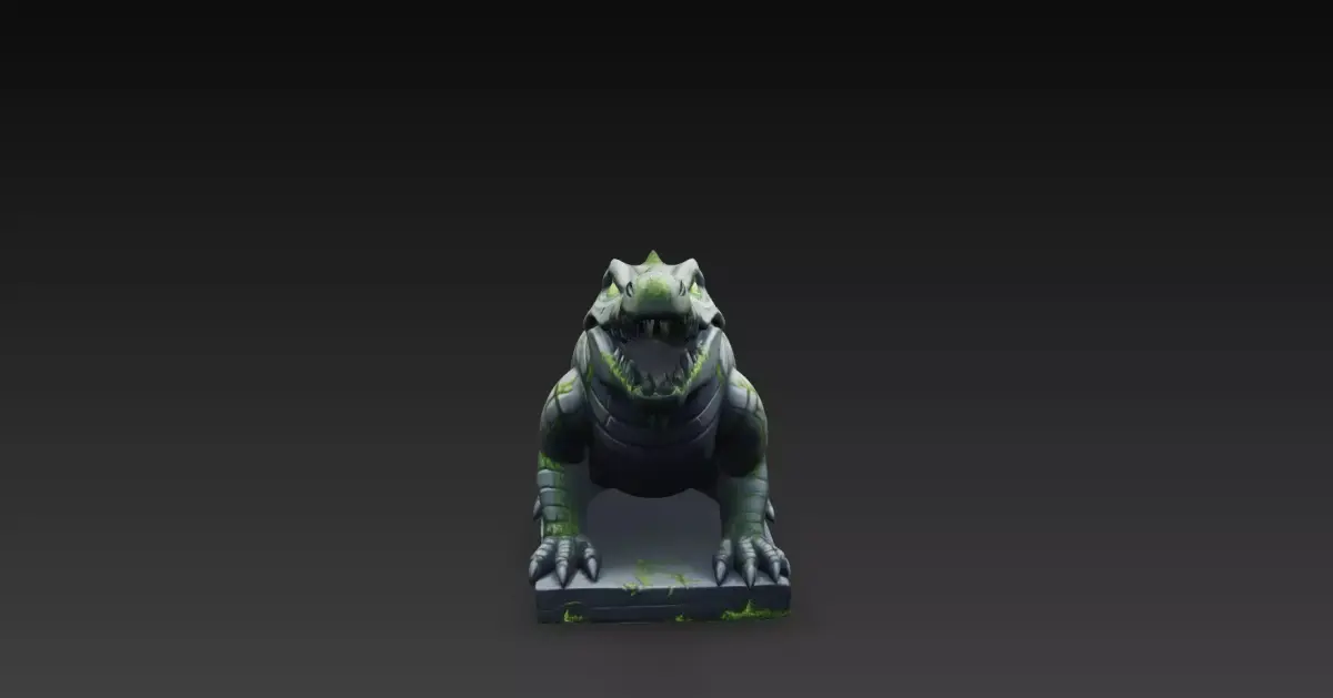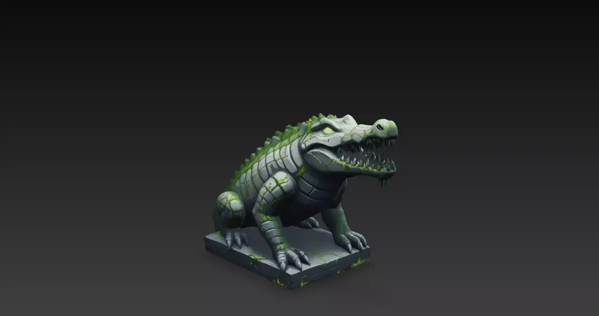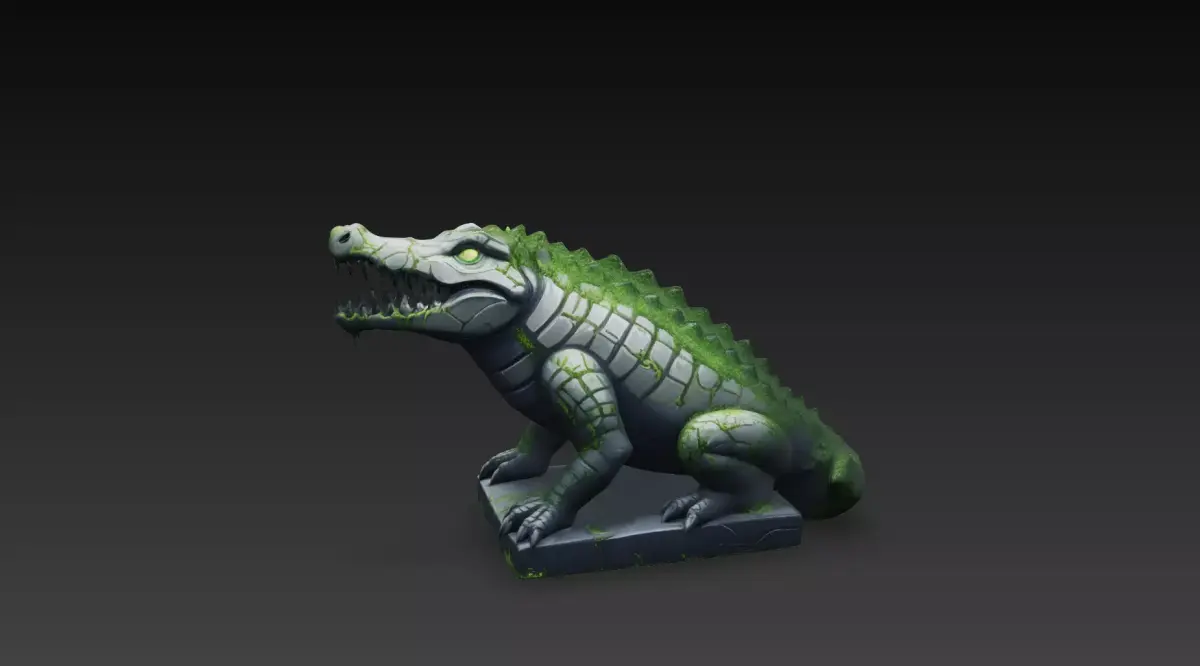 This Stone Crocodile Guardian Statue is a high-quality stylized fantasy 3D model created in Blender. The crocodile is sculpted in a powerful, aggressive stance with its mouth open, sharp teeth exposed, and a heavily armored stone body, giving it a strong ancient guardian presence.The statue features engraved stone plates, subtle cracks, moss growth, and weathered details that suggest long-forgotten ruins and primal magic. Resting on a stone base, this model is perfect for fantasy RPG environments, jungle temples, swamps, ruins, dungeons, and cinematic scenes.Its stylized proportions and clean sculpt ensure excellent readability while keeping a detailed and intimidating look, making it ideal as an environment centerpiece, guardian statue, or boss monument.