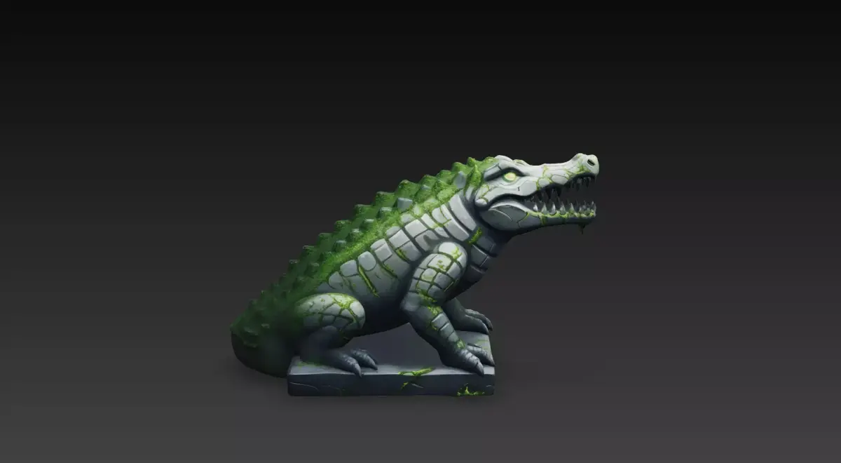 Stone Crocodile Guardian Statue – Stylized Fantasy 3D Model