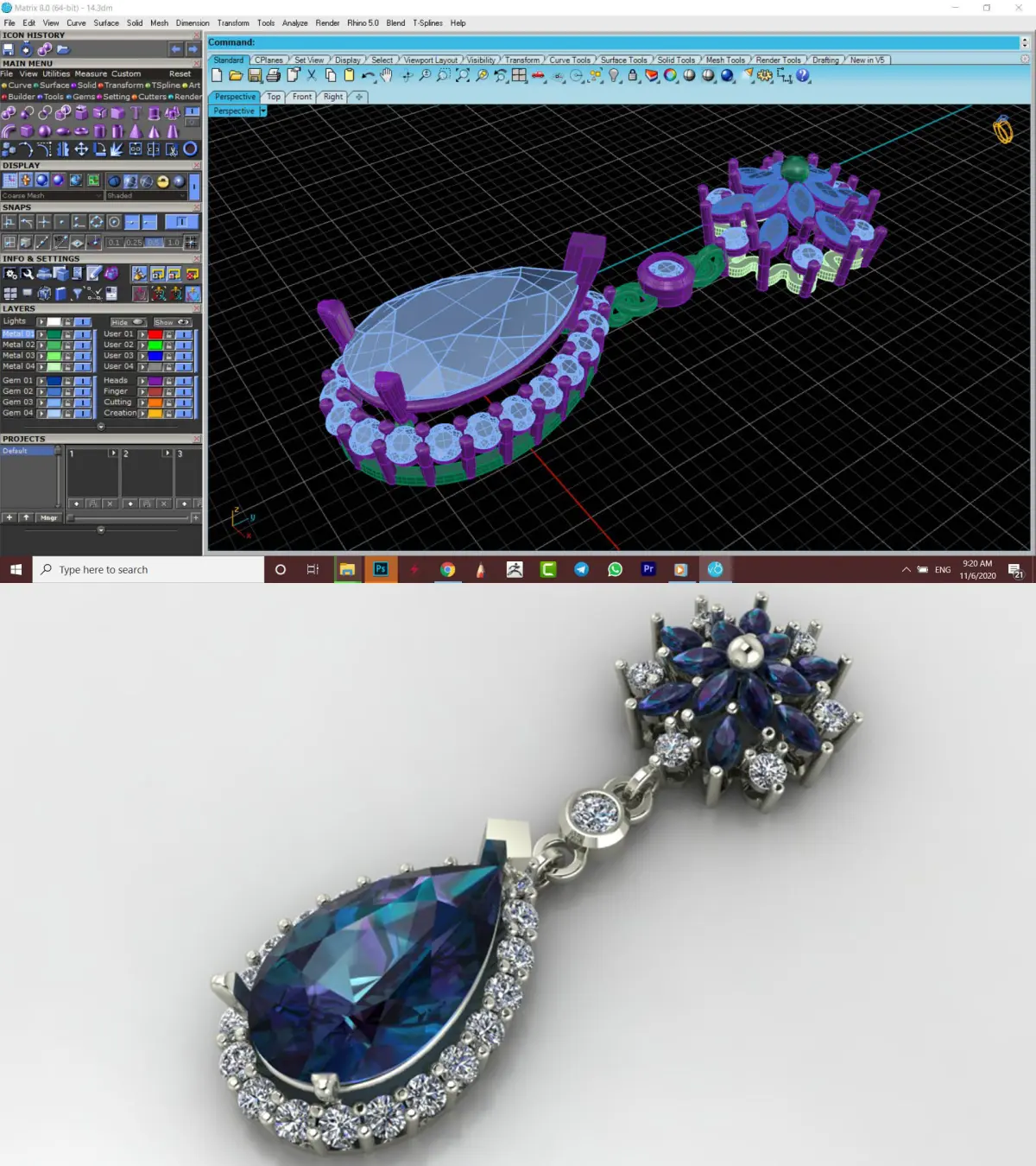 silver Pendant designed with big tearstoneJewelry pendant with tearstone and small round stones that has three pieces and can be turned into earrings. It can also be used as a bracelet with chains.