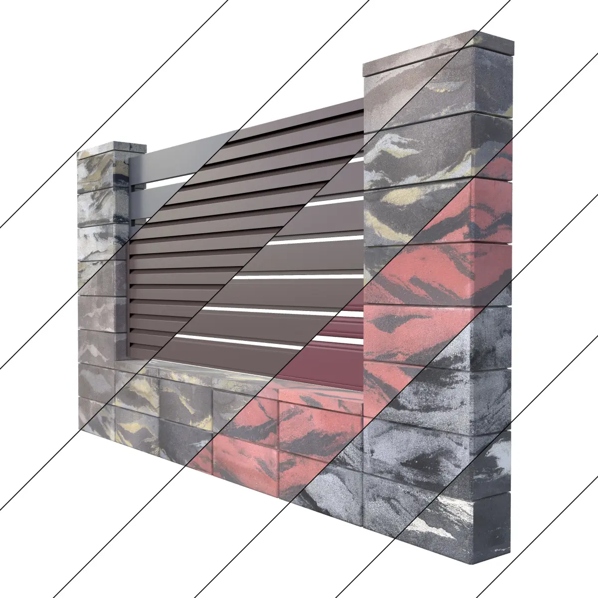 intake block: 20 x 20 x 50modular hat: 20 x 4.5 x 50