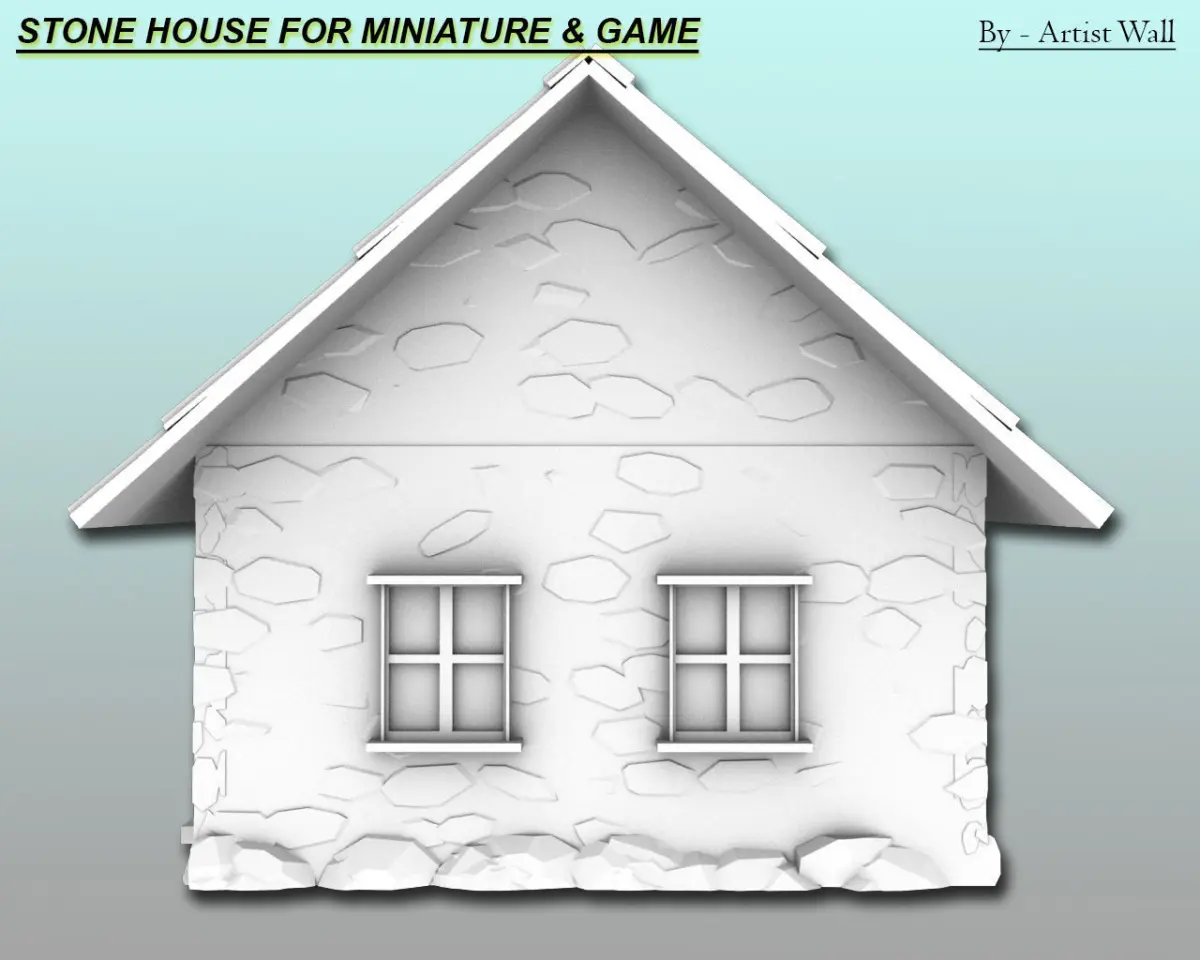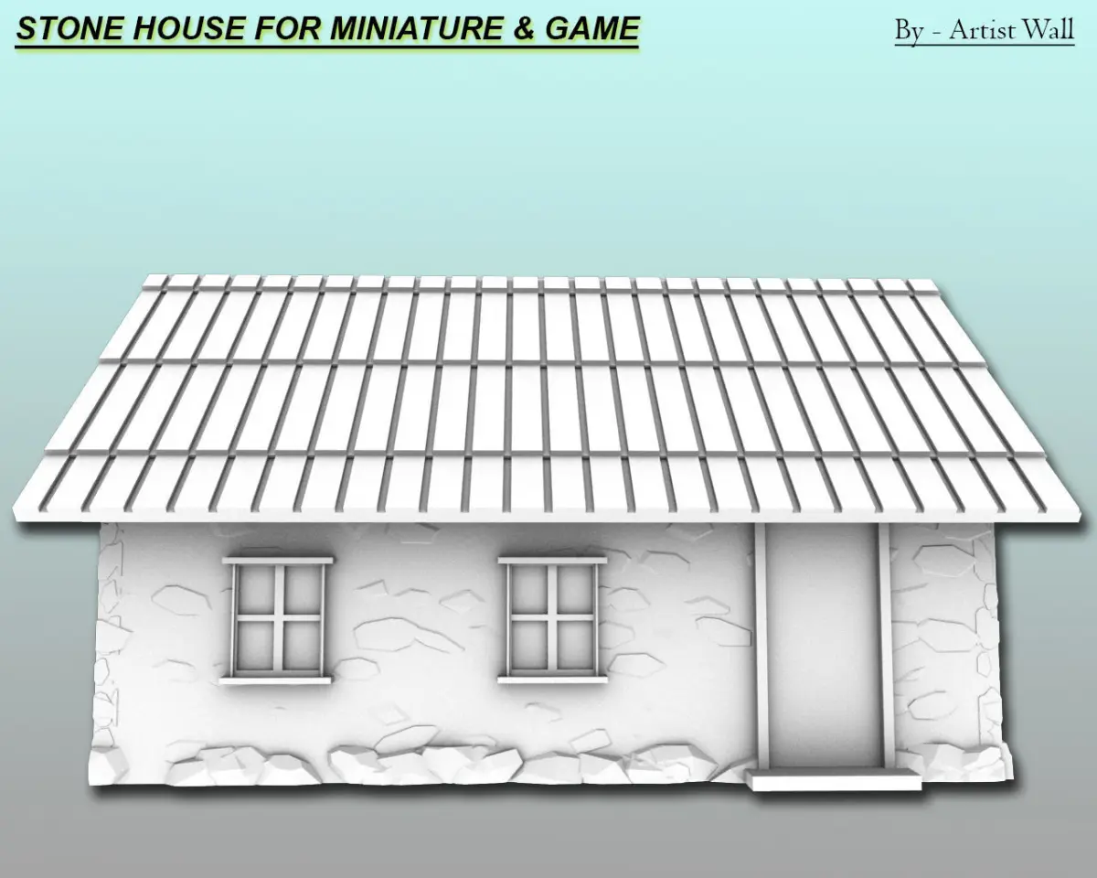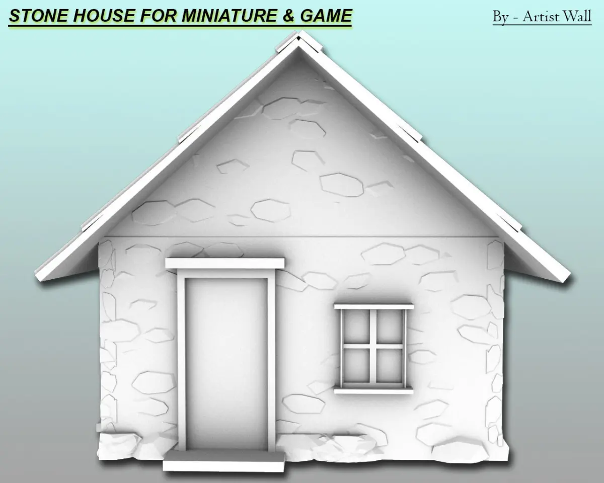 Stone House For Miniatures and Game****************************************************************** Hi Everyone , - Detailed enough for miniatures - Mid-poly model. - Real world size (system units - mm) - Files with the model do not contain extraneous or hidden objects (lights, cameras, etc.) - The model is completely ready for use/3D Print & Game - All previews are rendered in MAYA - All formats are open without errors. ****************************************************************** - Available File Formats - - .stl - .Obj - .Fbx - .Blend - .Mb - .Ma ****************************************************************** Size In mm Units -- X - 89.56 mm- Y - 61.78 mm- Z - 48.00 mm******************************************************************