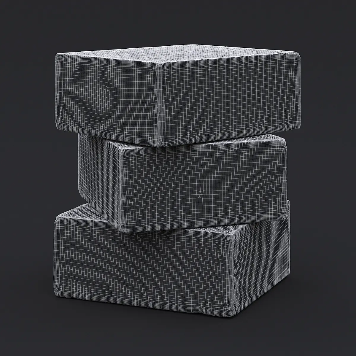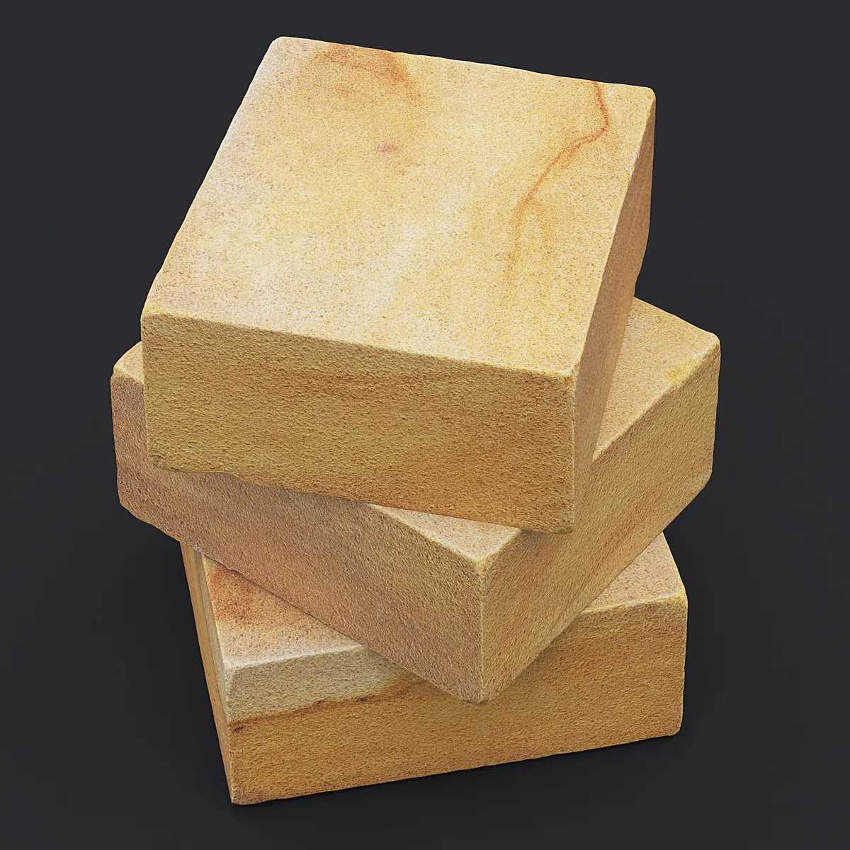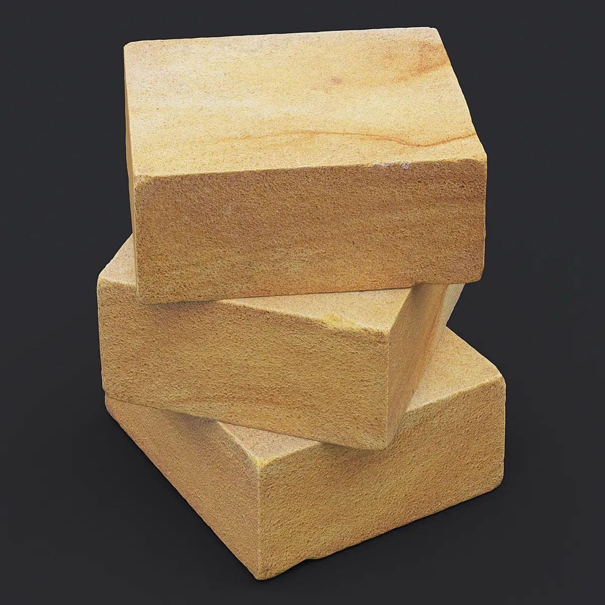 Photogrammetry 3D scan of three orange stacked sandstone blocks.
