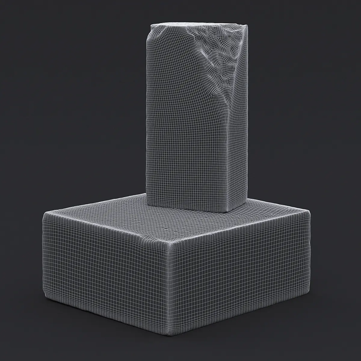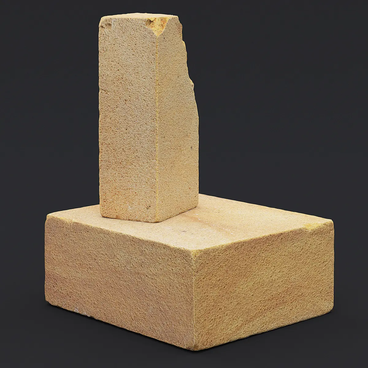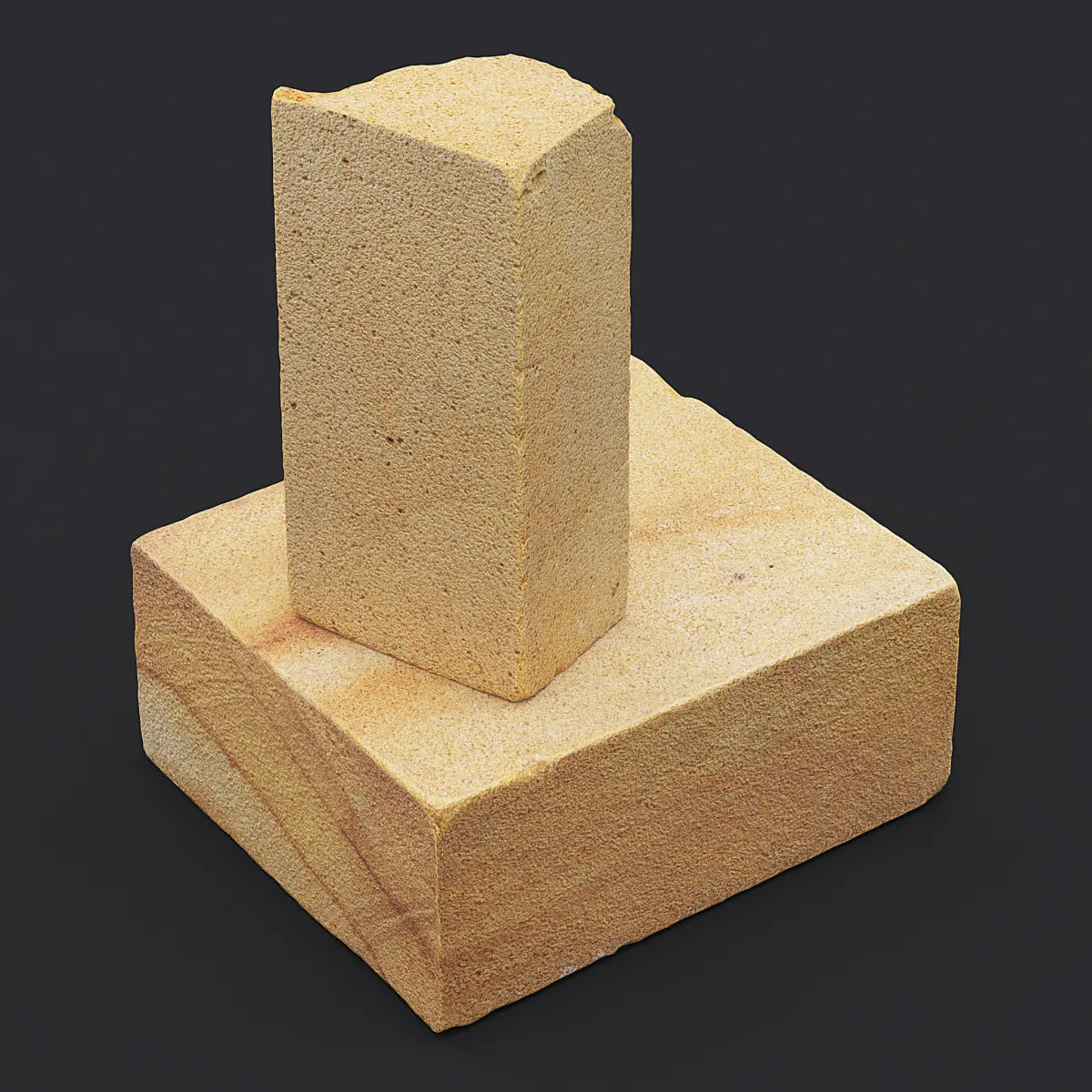Photogrammetry 3D scan of two orange sandstone blocks - one with damaged corner.
