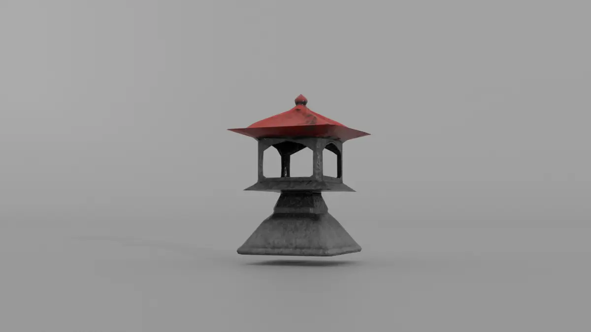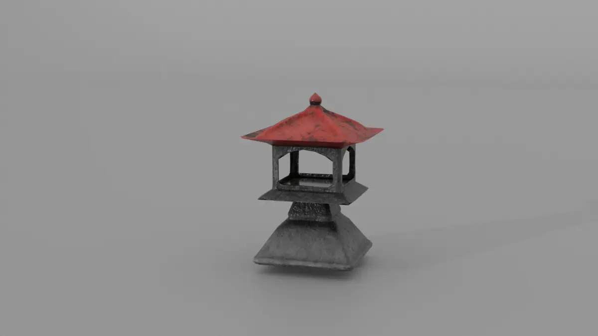 3D model of an ancient Japanese stone lantern .Model made in blender.With 22 rendered images and 1 wireframe image