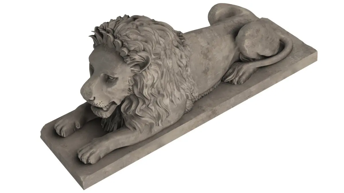 - High-resolution Stone Lion Sitting Sculpture 3D Model all materials for V-Ray renderer.