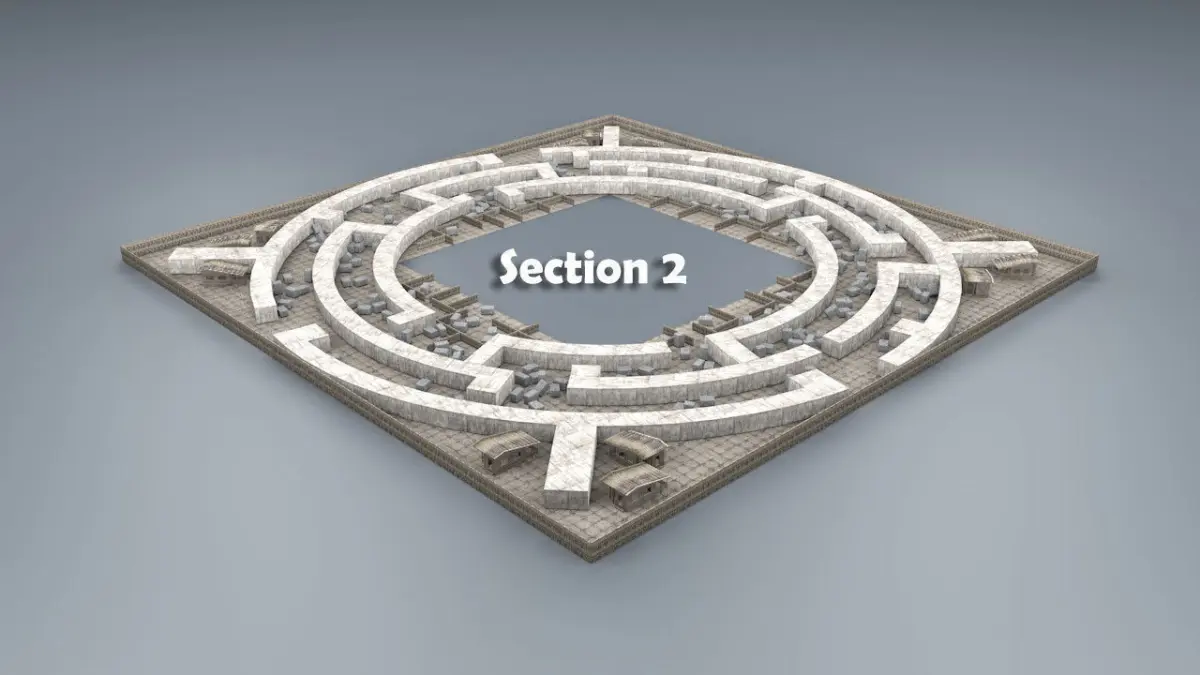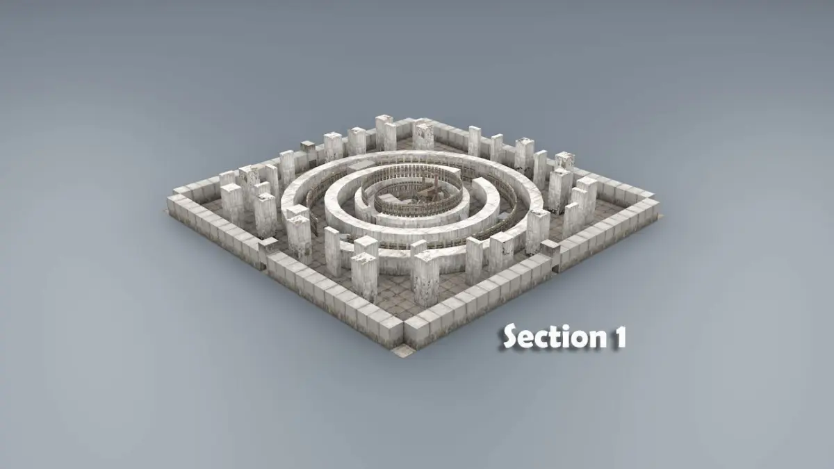 This is a 325m x 325m huge game ready maze with good textures and objects. Maximuım wall height is 9,90m. I try this structure in game engines and never find a major problem while my character moving inside.