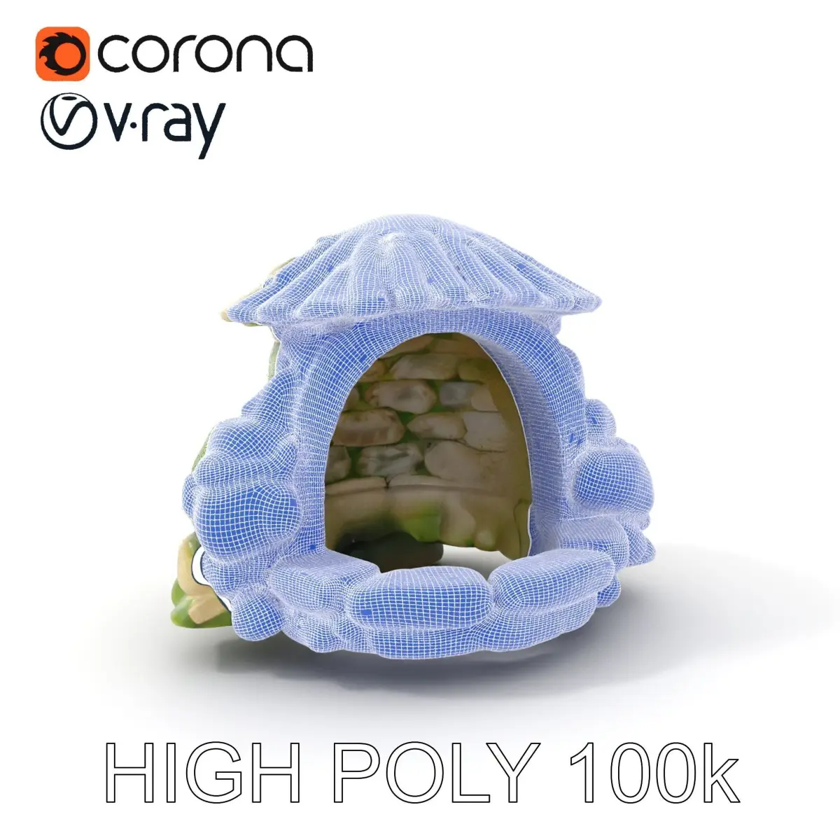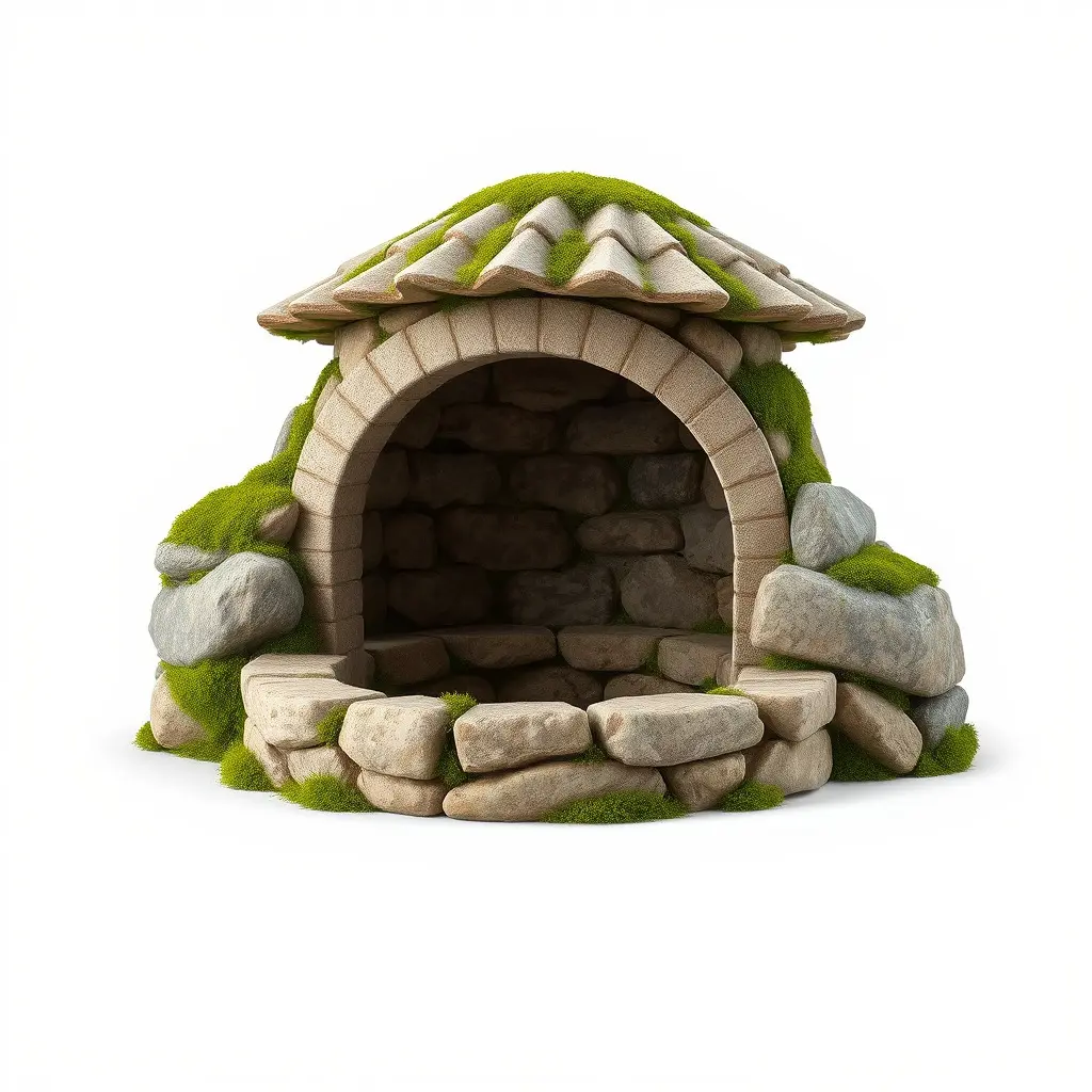 The stone moss arch shelter is accurately unwrapped with no overlapping UVs, making it easy to apply textures seamlessly. This model is ideal for enhancing outdoor scenes in games or for creating realistic nature renders in 3D software. It can also be integrated into interactive presentations using Unity or Unreal Engine.