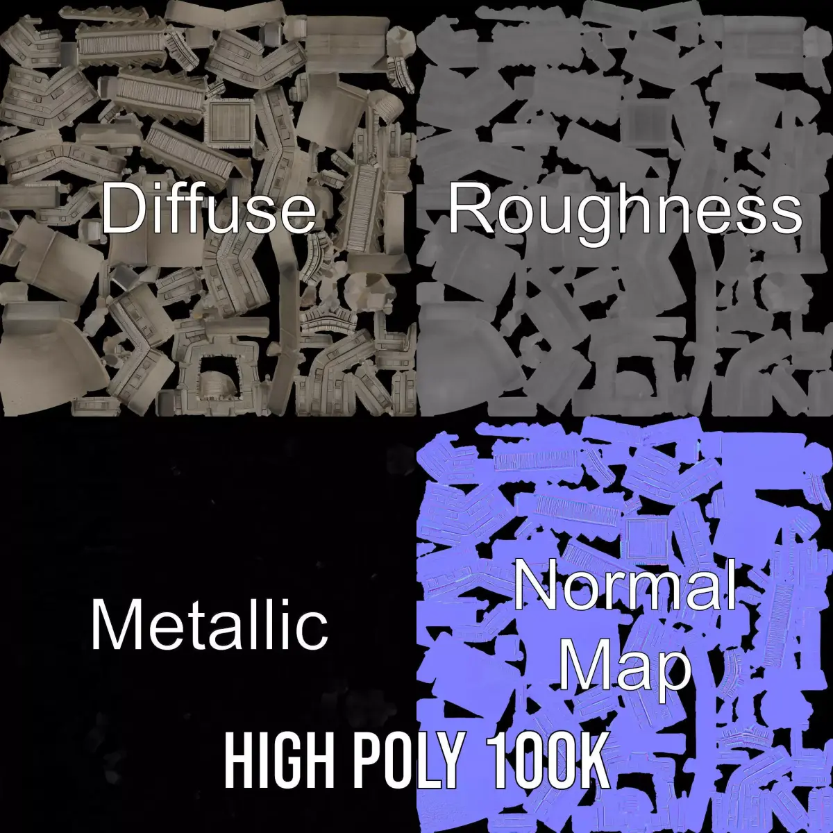 The model's textures are PBR, Diffuse, NormalMap, and reflection/roughness/metallic, which are suitable for any modern rendering engine. All models accurately unwrapped and have no overlapping UV. All textures are 4096*4096 in size.