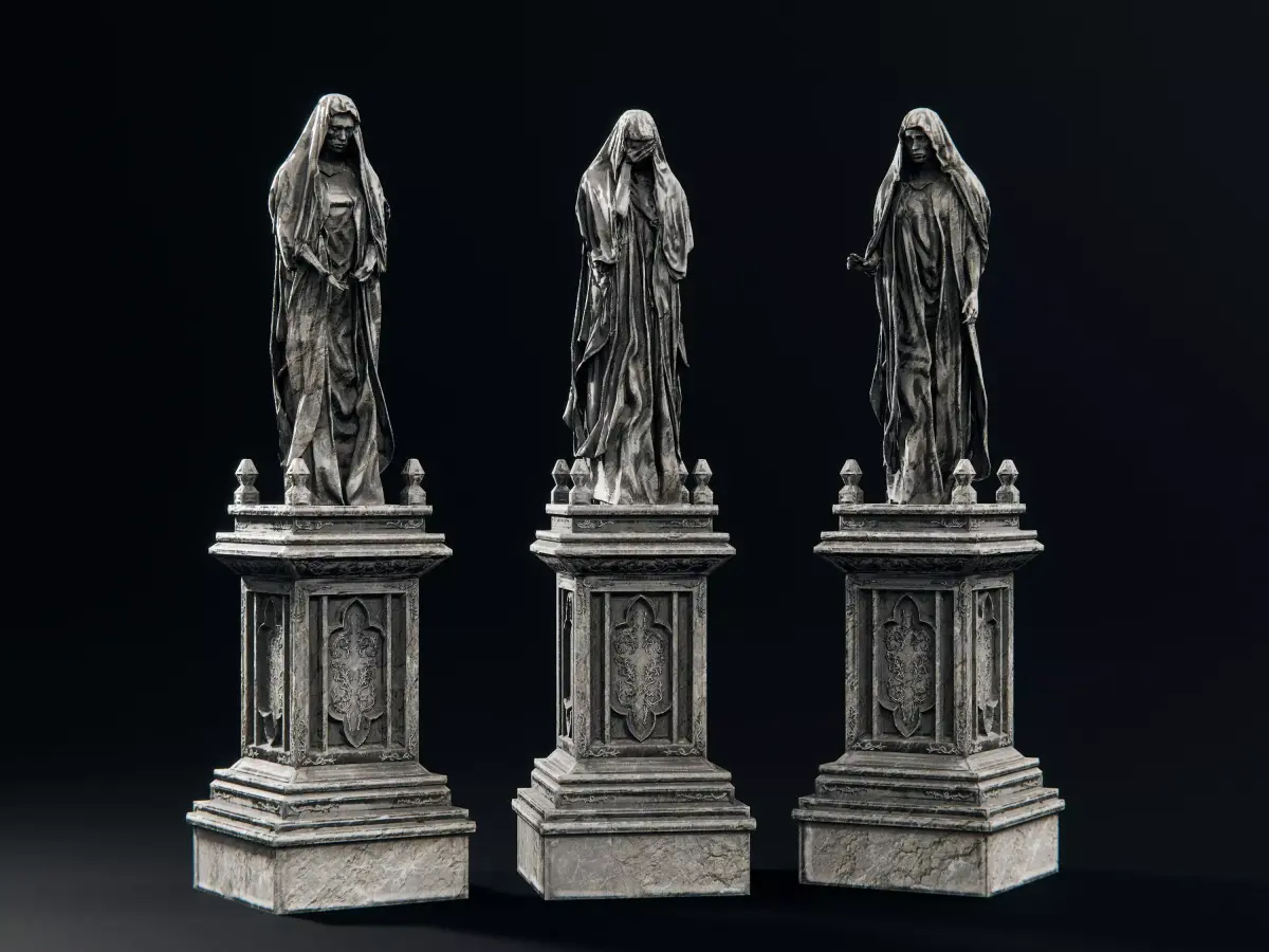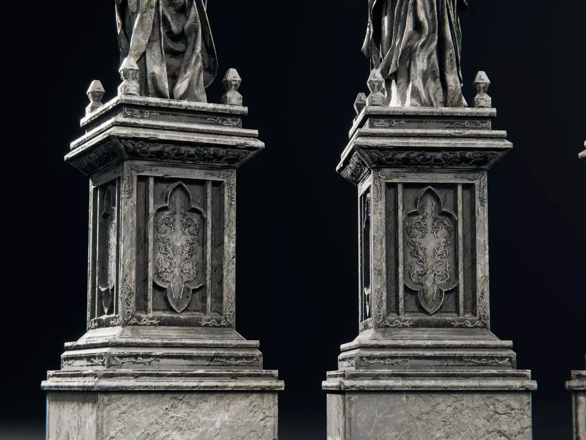These statues where made to be highly realistic and easy to render. All statues share a baked 8K PBR material including: Diffuse, Roughness, Normal. All textures are packed into the blend files, ready to use. Additional texture download is provided for the other formats.