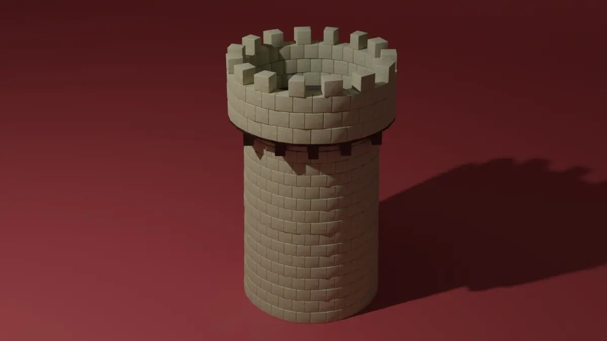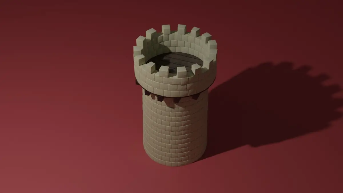 A medieval stone tower with some wooden beams and planks. The tower is cylindrical with a top on which guards or archers or some war machines can be placed on. The model is made in Blender 3.0 and renered in cycles.