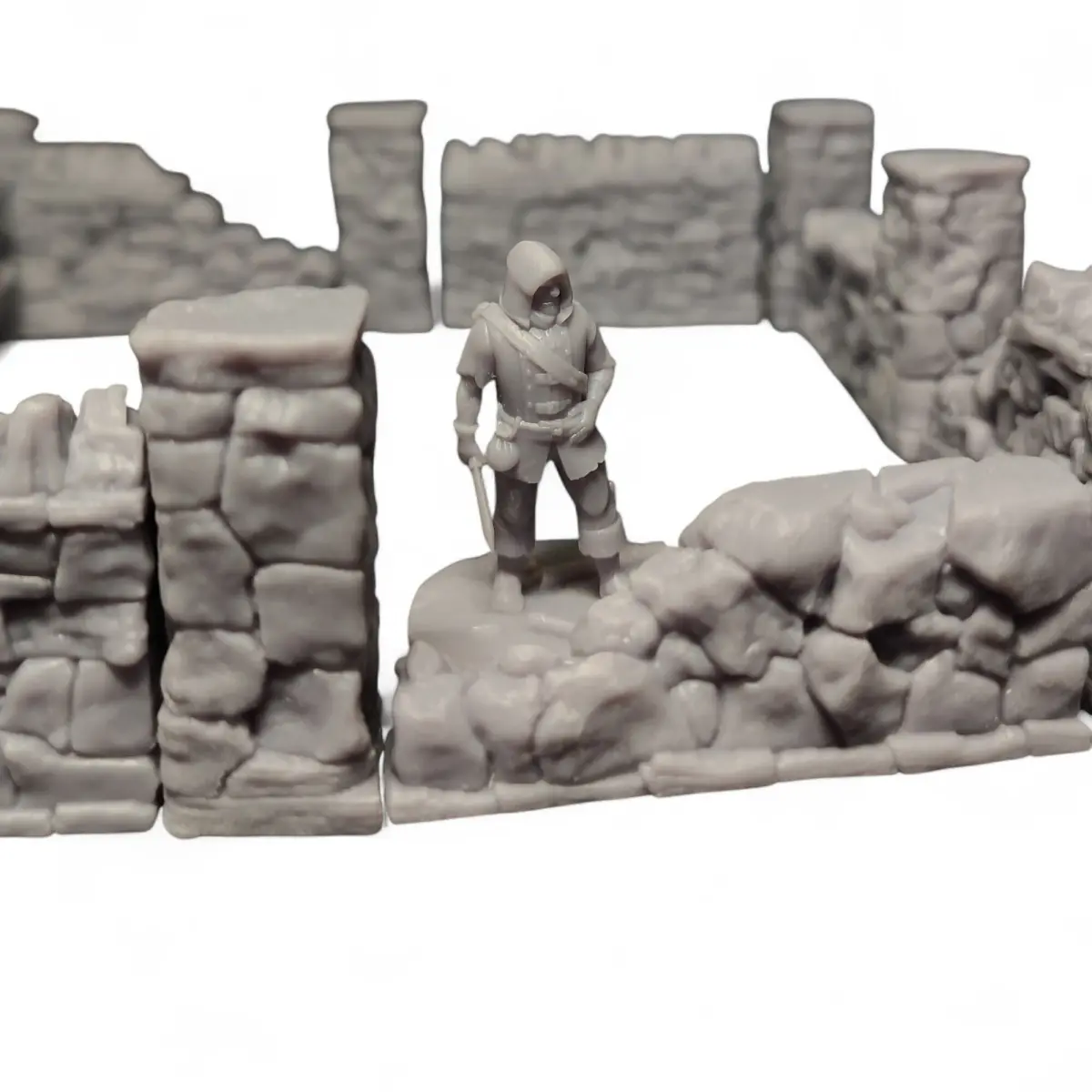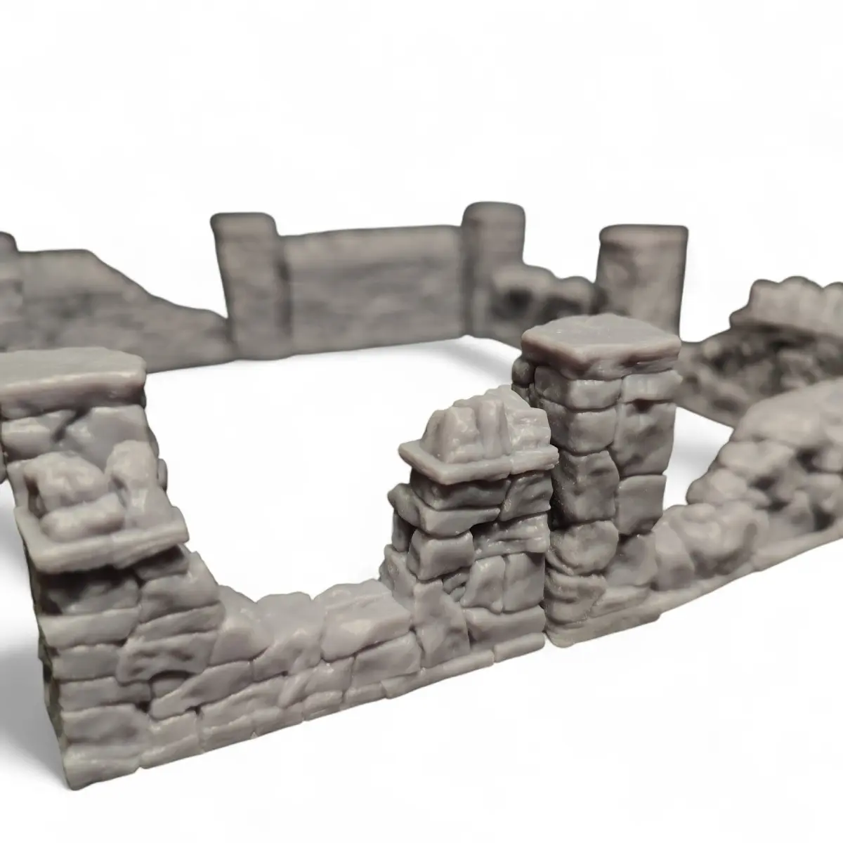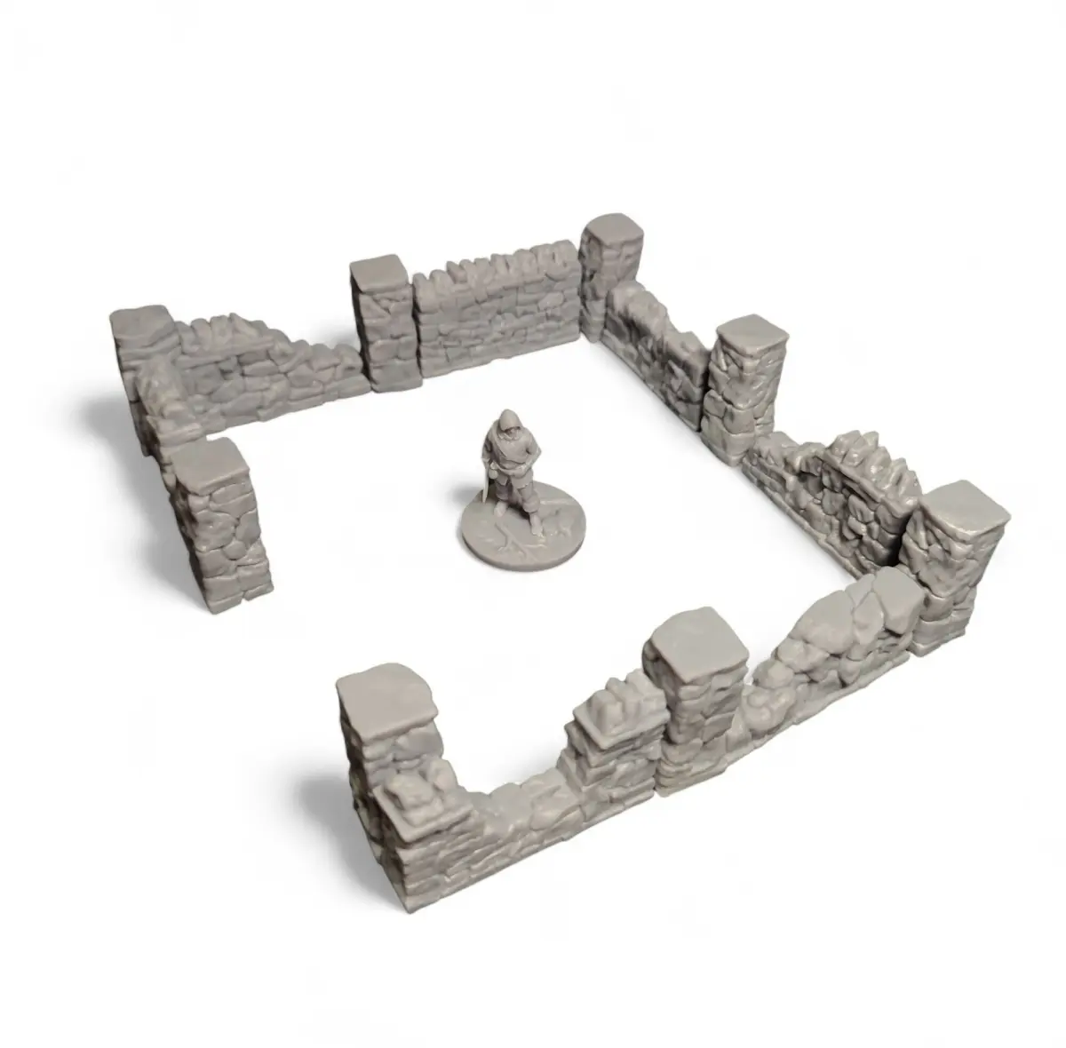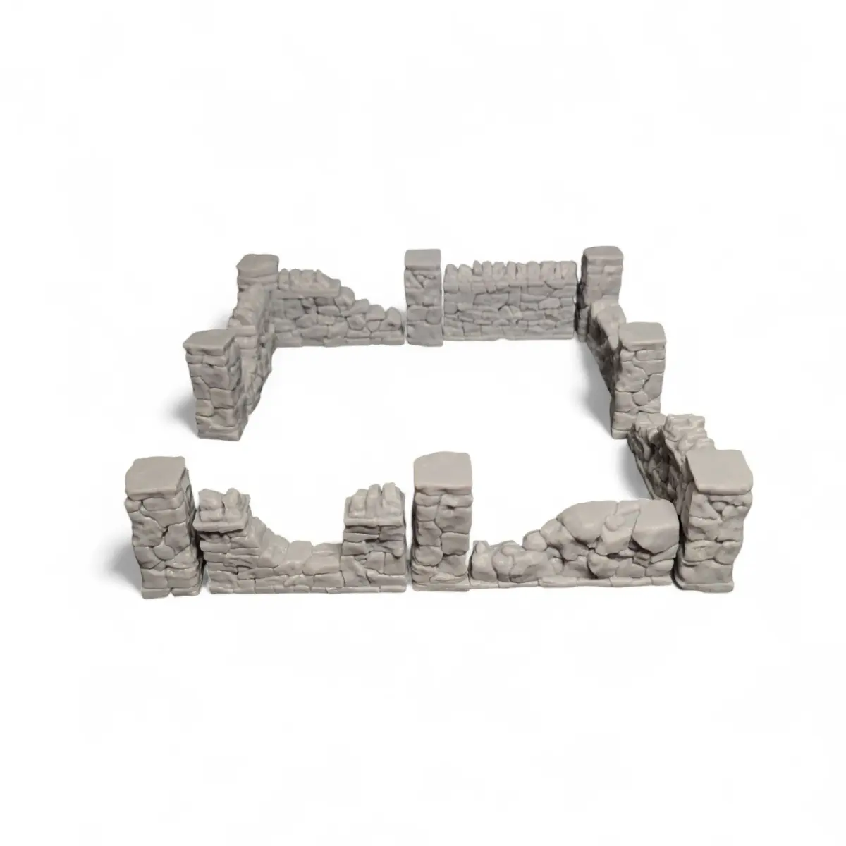 Stone Walls is a set of ancient, time-worn stonework — perfect for forgotten temples, crumbling fortresses, or long-abandoned dungeons.The blocks are cracked, weathered, and uneven, with moss creeping through the gaps. Columns lean ever so slightly, as if they've been standing for centuries, resisting collapse out of sheer stubbornness.Each piece feels like it has a story to tell — ideal for adding depth and age to your tabletop terrain.