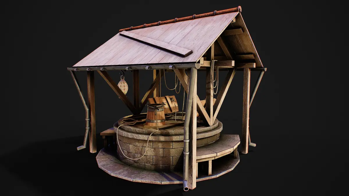 Hello. This is a high definition quality polygon of a Stone well 3D Model with PBR textures. Extremely detailed and realistic. Suitable for movie prop, architectural visualizations, advertising renders and other. The archive includes Obj and FBX, textures for the Unity: Base color, Metallic, Mixed AO, Normal_OpenGL, Roughness. And also included in the archive textures for UE: BaseColor, Normal, OcclusionRoughnessMetallic. Textures made for large elements in 4K for small ones in 2Kther textures 4K. The number of materials corresponds to the number of main objects in the scene. The model contains 6 object: bucket, lantern, ropes, stone_well, well cover, well cover001. If you need, we will make a file of this model for 3D printing especially for you. We would be grateful for a link to your project with this model.
