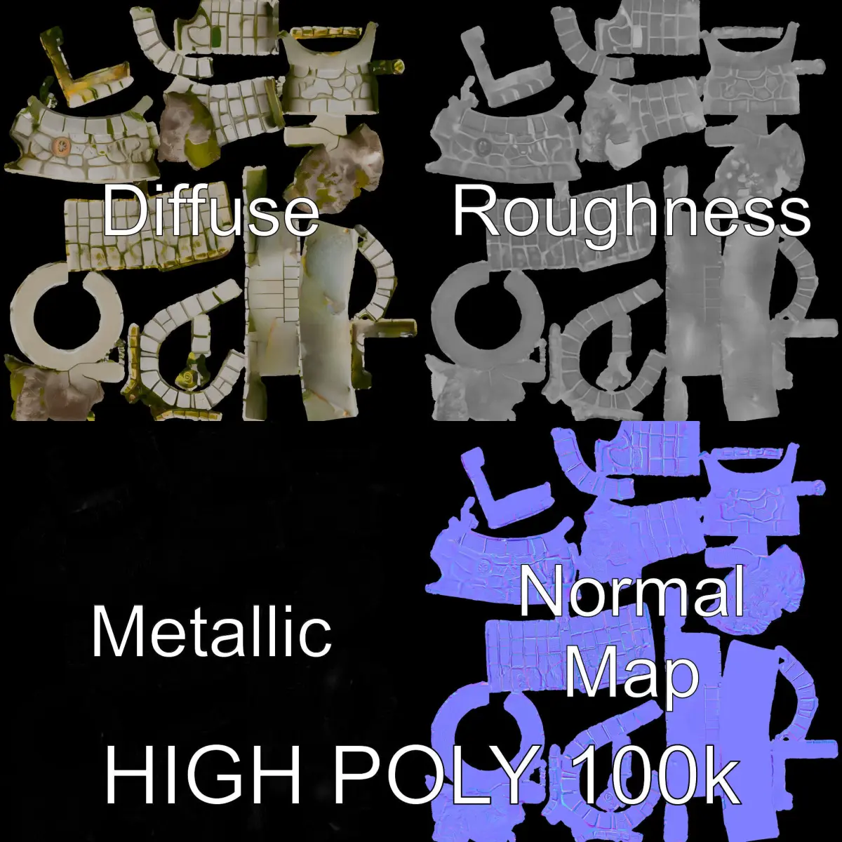 The model includes PBR textures, including Diffuse, NormalMap, and roughness/metallic maps, designed for modern rendering engines. All models are precisely unwrapped with no overlapping UVs, ensuring high-quality texture application.