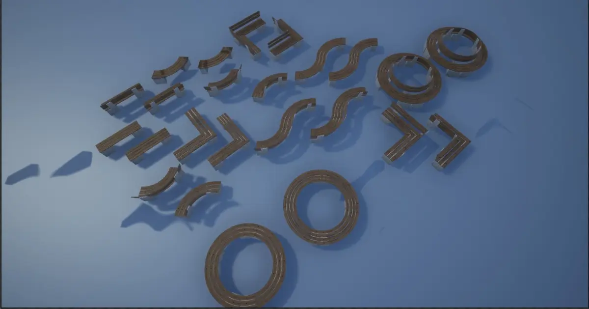 - Bench 1 Turn With Support Bend 2 : 522 polys, 1136 tris, 608 verts