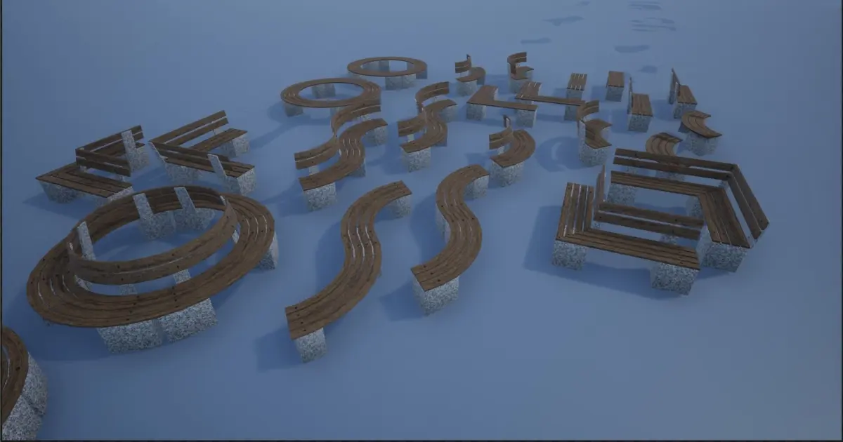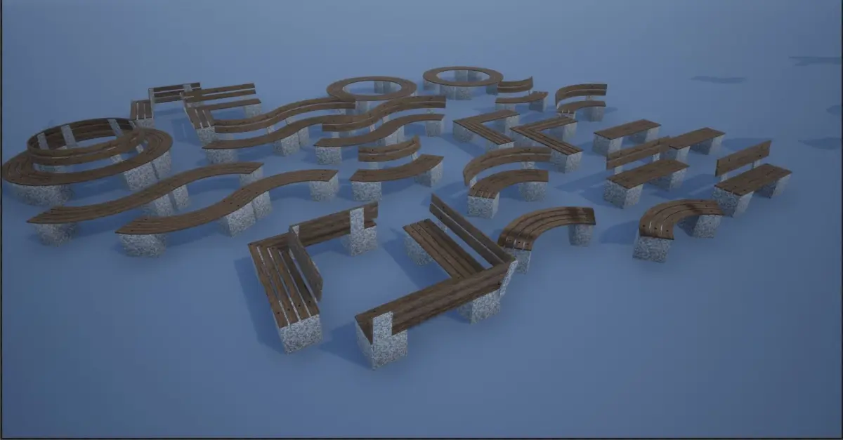 - Bench 1 With Support Bend S : 1044 polys, 2272 tris, 1216 verts