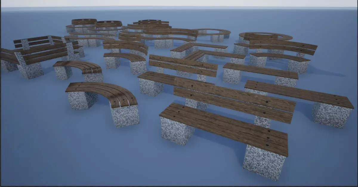 - Bench 1 Without Support Round : 1360 polys, 2976 tris, 1664 verts