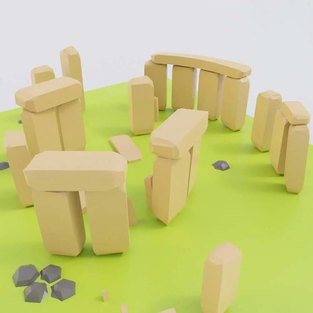 Stonehenge landmark lowpoly game ready 3d model. Model is fully Unwrapped but not textured.No Texture map file included. We have used colors from shader. No lighting file available.