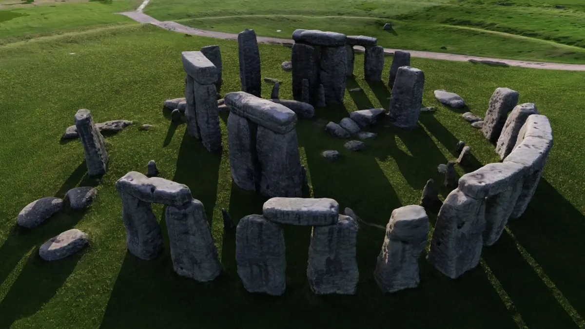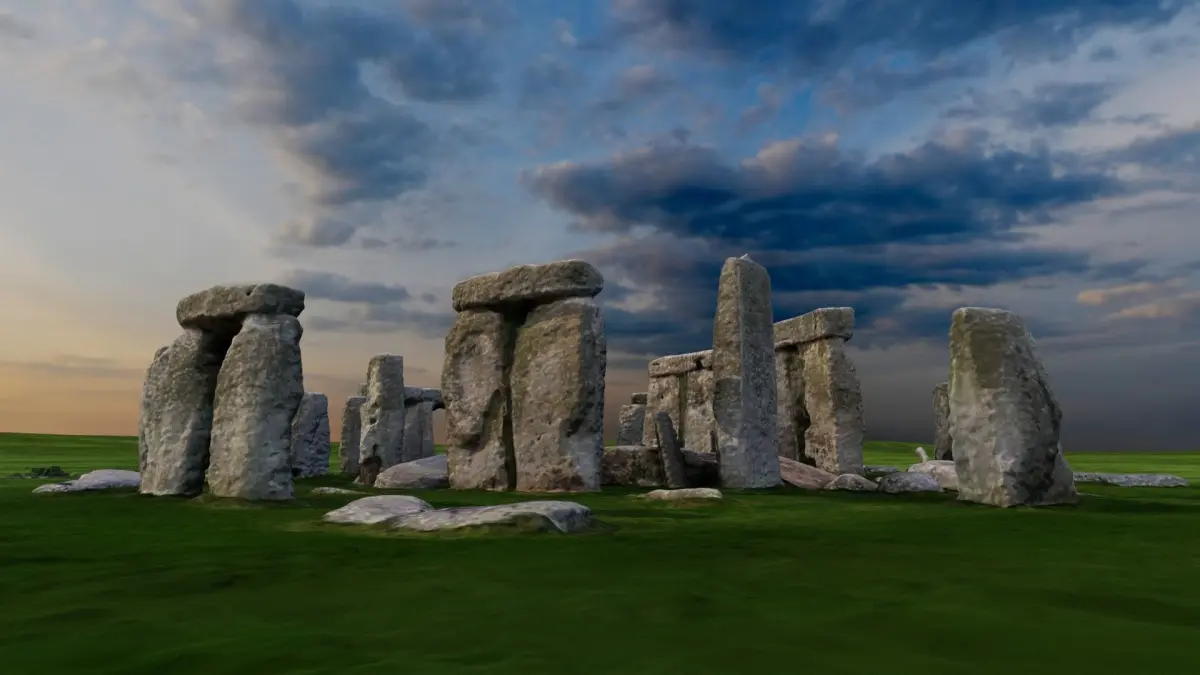 PLEASE READ THE DESCRIPTION AND CHECK ALL THUMBNAILS BEFORE BUY. Triangulated mesh model of Stonehenge prehistoric monument from imagery synthesis at medium resolution. The model is georeferenced in UTM coordinates, full scale and it was generated with controlled precision to ensure proportions integrity. Developed in metric system, the outer sarsen circle has an approximately diameter of 32 m/105 ft while the tallest upright trilithon rises 22 ft / 6.7 m above ground level. Model package includes raw files with original georefence (.obj, .mtl and .png base texture), composed scene (.blend) and a trimmed cleaned version oriented to 3D printing (.stl). Every thumbnails were generated from the blender file and I'm including three different environments (overcast, evening and sunset skies). The scene also includes a texture plane to extend horizon and the surrounding area was populated with tridimensional grass objects (switched off on viewport but will show up on render). For the printable version the main mesh was decimated, remeshed to quads, trimmed with a circular concentric shape and base texture was removed (not tested). Mind that I'm including both raw files, georeferenced and with shifted origin (.zip) in case you want to compose your own scene. Try to avoid raw georeferenced files as they generated bad geometry (floating point issue on export). Every thumbnails are presented as generate from cycles render engine with NLM denoising enabled. Feel free to contact me if you have any doubts about the model or if you want a similar model from a different location.