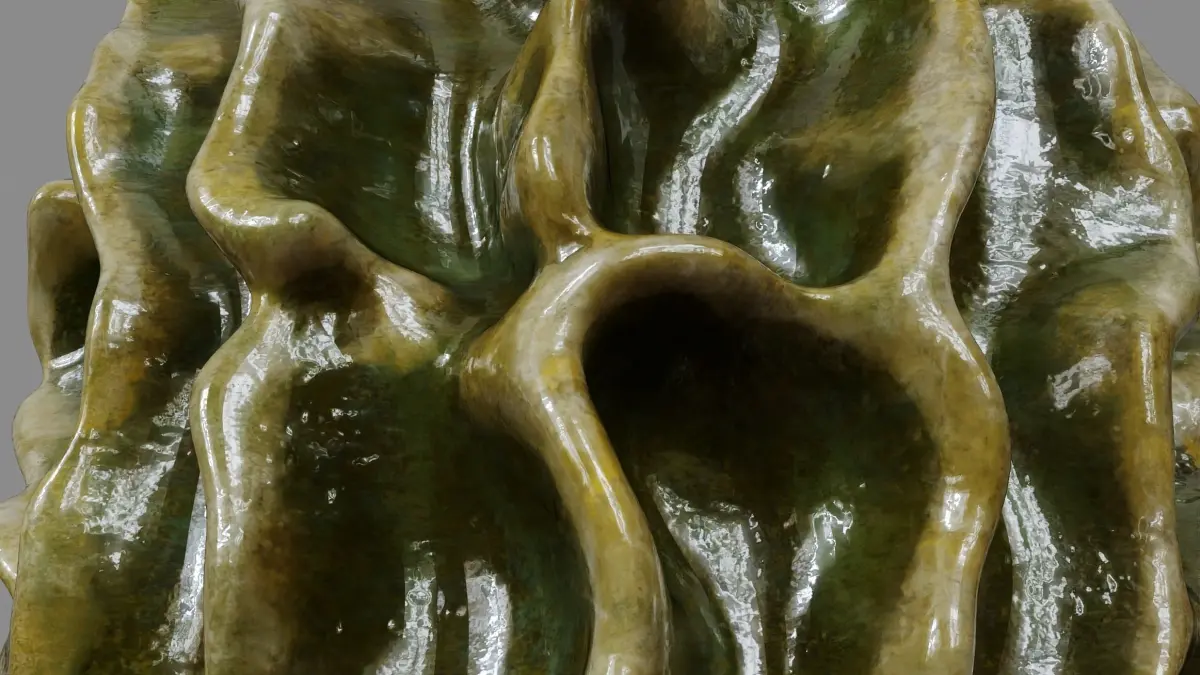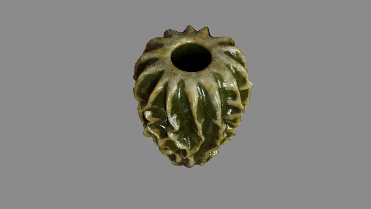 3D Model Description:This high-quality 3D model features a unique stoneware vase inspired by organic forms and textures. The vase boasts an intricate, textured design with a flowing, undulating surface that adds a touch of artistry to any space.