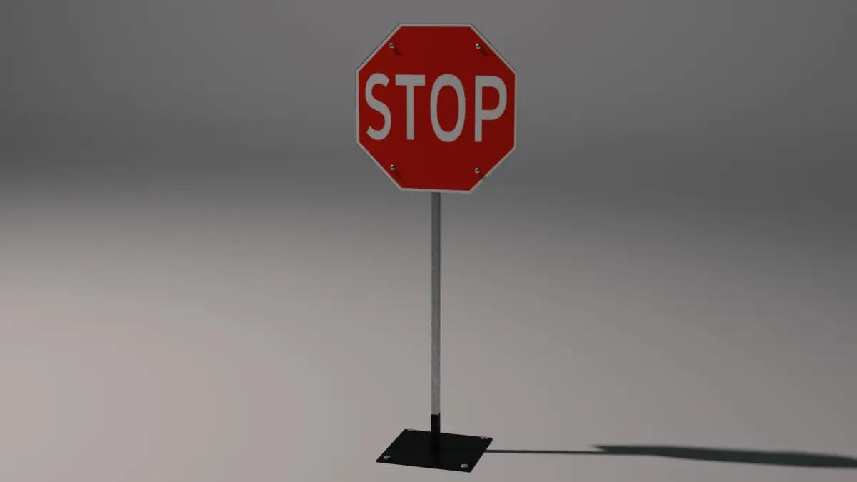 Road sign model. This is a stop sign model that is suitable for decorating and diversifying the street in 3D format.(If you like or dislike this model, you can leave a comment or put it like it or not, I will be very happy to hear both praise and criticism). You have the opportunity to animate, render, or attach this model to the real world (video) or just enjoy this model by adding what you see fit. The model was made in the blender program on the cycles engine at a resolution of 1920x1080 (some photos have a resolution of 4k). Thank you for viewing or purchasing this model, I hope I satisfied your needs and you liked my work. Have a nice day!)