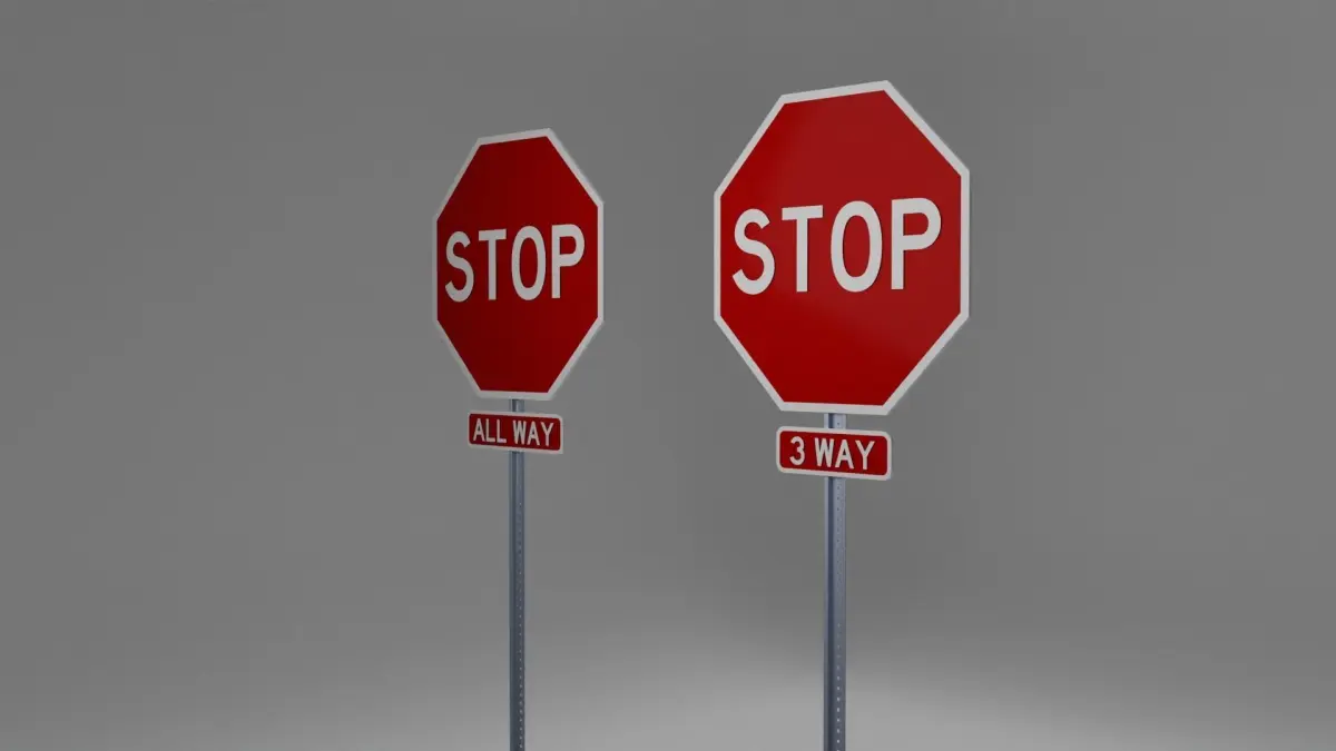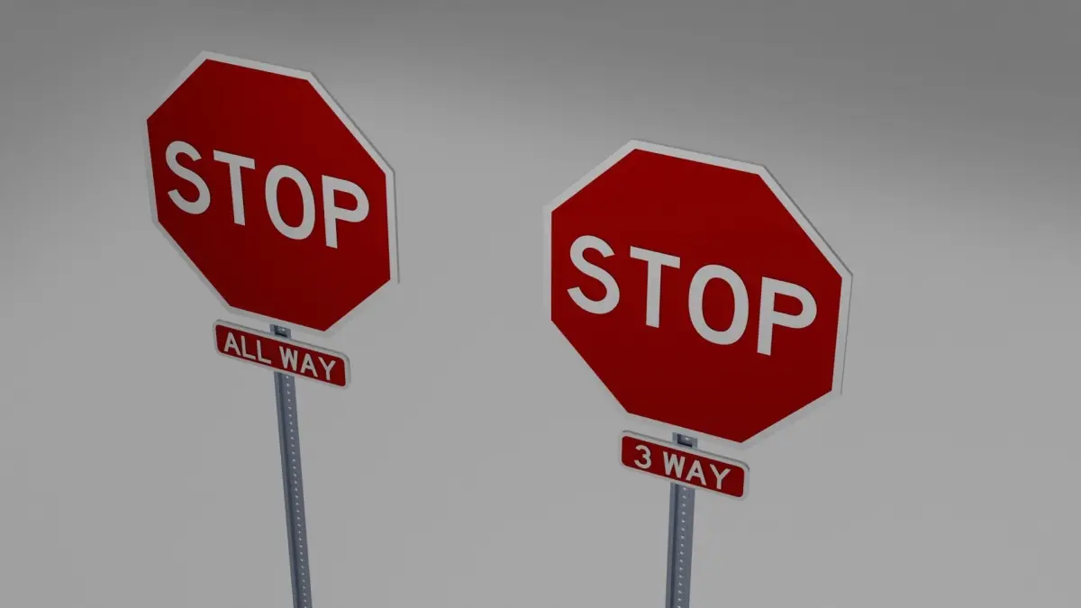 STOP Signs, ALL WAY and 3 WAY. Accurate measurments, high detail, realistic materials. Great for creating road/street/car/traffic scene.