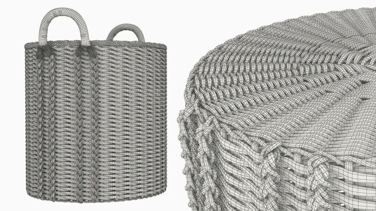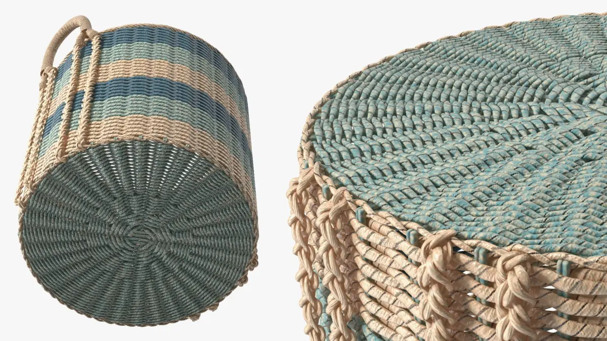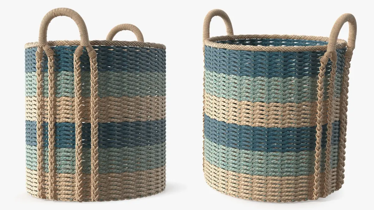 Storage Baskets Collection is a set of 3d models of intricately designed woven baskets, including various styles and shapes suitable for different uses and aesthetics.