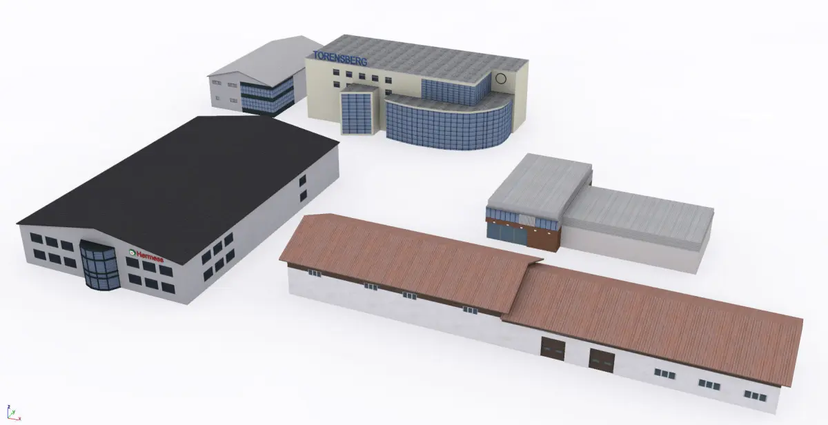 Storage buildingsFBX, 3DS, max. and .STL formats includedEach model has .tga texture file (1024 or 2048)6,200 polygons and 10,000 verticles for all the models, divide by 12 to get average count for eachWill suit well for background,if have questions - fell free to contact me: alexandr779979@gmail.com