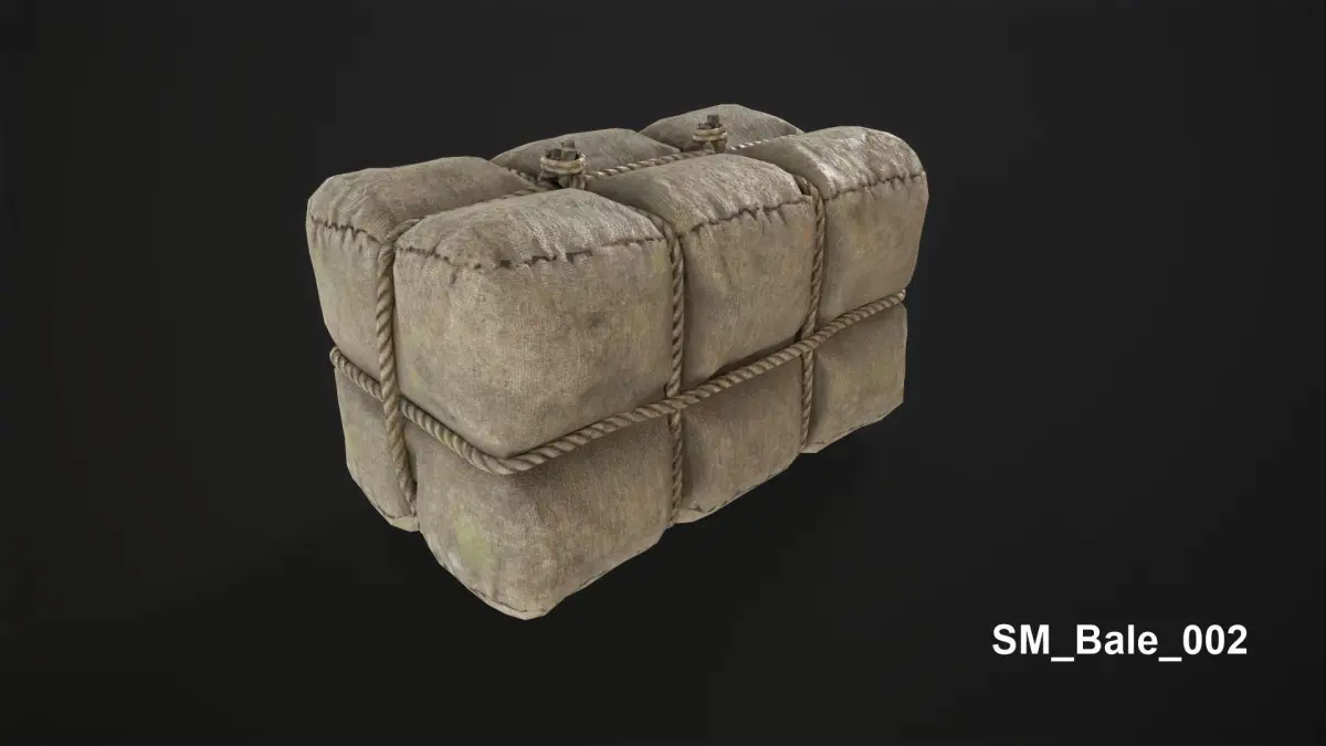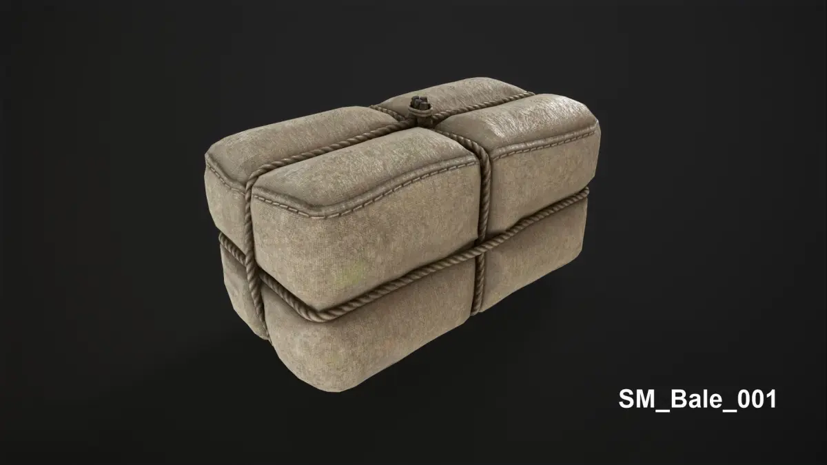 SM_Bale_001Textures 4K TARGA image 8 bitReal world dimensions: 213x115x122 cm TD: 9.441 px/cm 5366 faces (10382 tris)