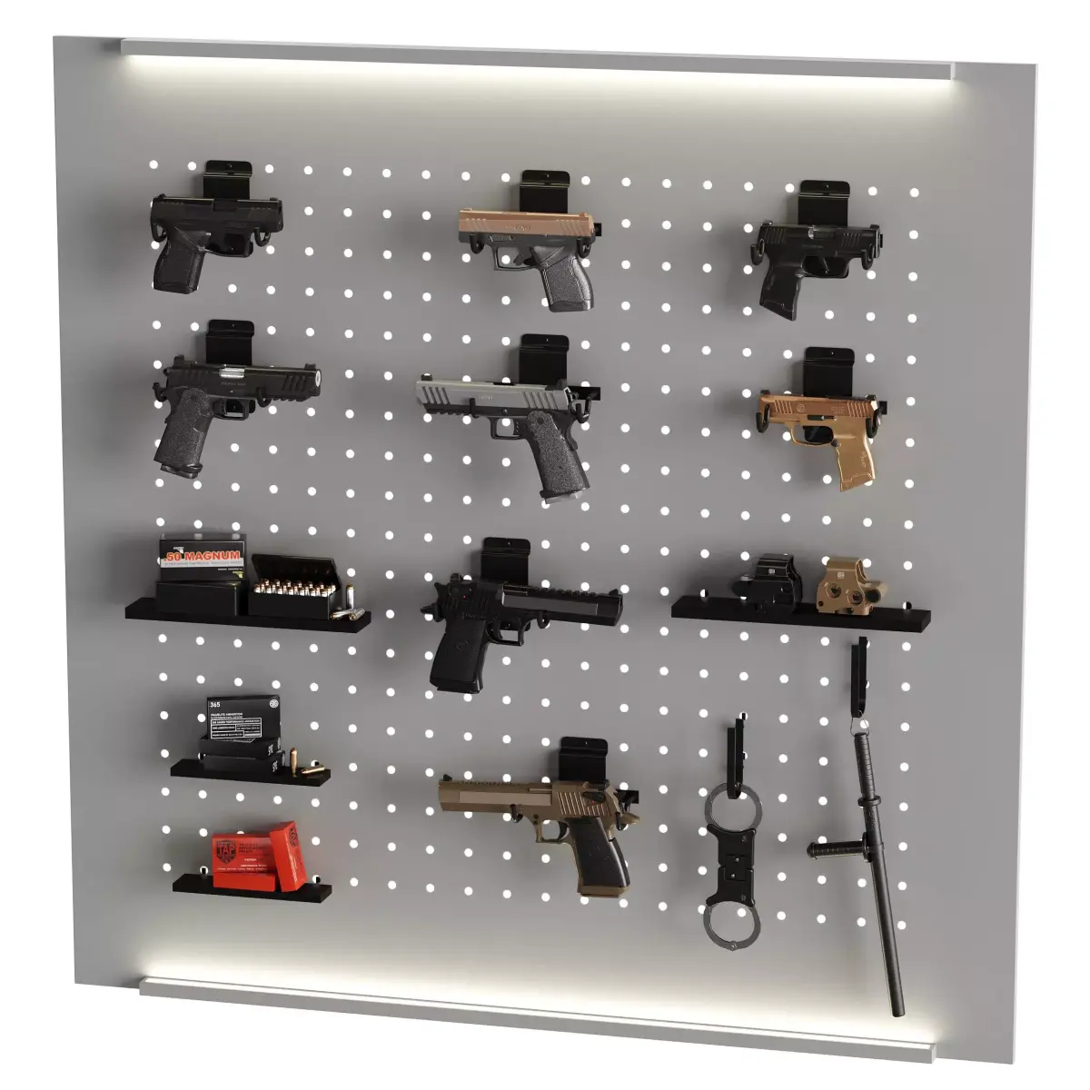 Store Show Case 13 Gun Store 44 HandgunSpringfield Armory 1911Taurus GX4Desert EagleSig P365EOTECH EXPS3 SightsBaton And HandcuffsBulletsTextures Are 4KTextures Are Pbr You Can Use in any of programsVray and CoronaFbx and Objblender Cycels