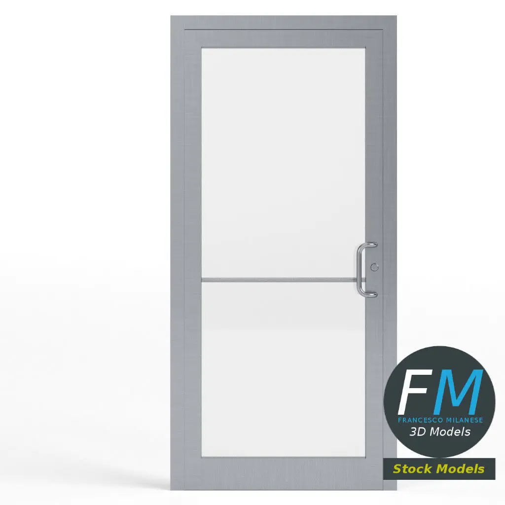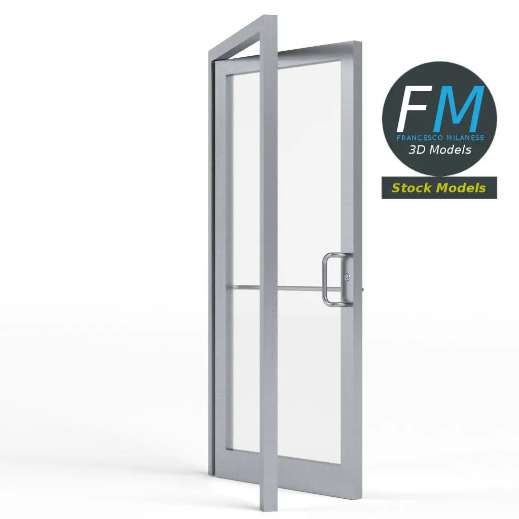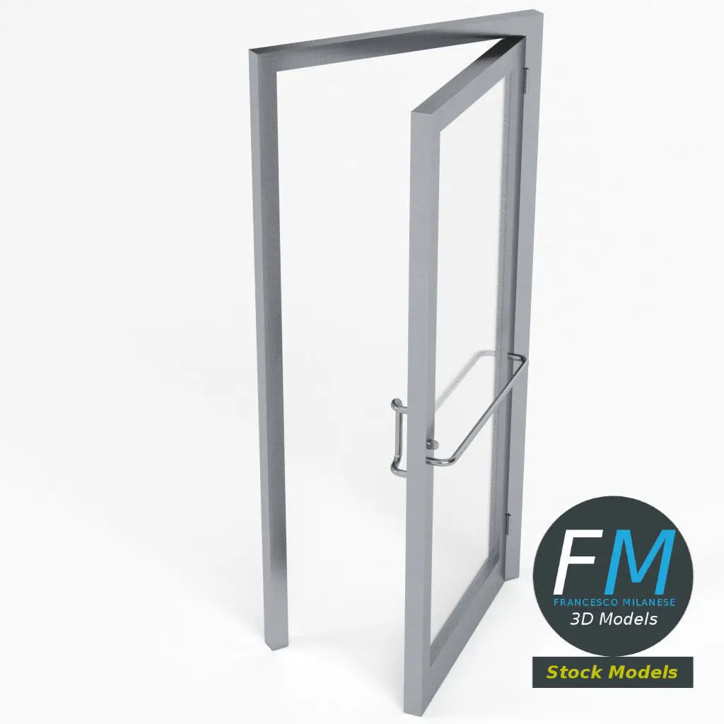 Storefront glass door 3D Model. 3 individual objects (frame, metal, glass; so, you can easily delete, rotate or even animate some parts, if you want) sharing 2 non overlapping UV Layout maps, Materials (metal, glass) and PBR Textures set. Production-ready 3D Model, with PBR materials, textures, non overlapping UV Layout map provided in the package.