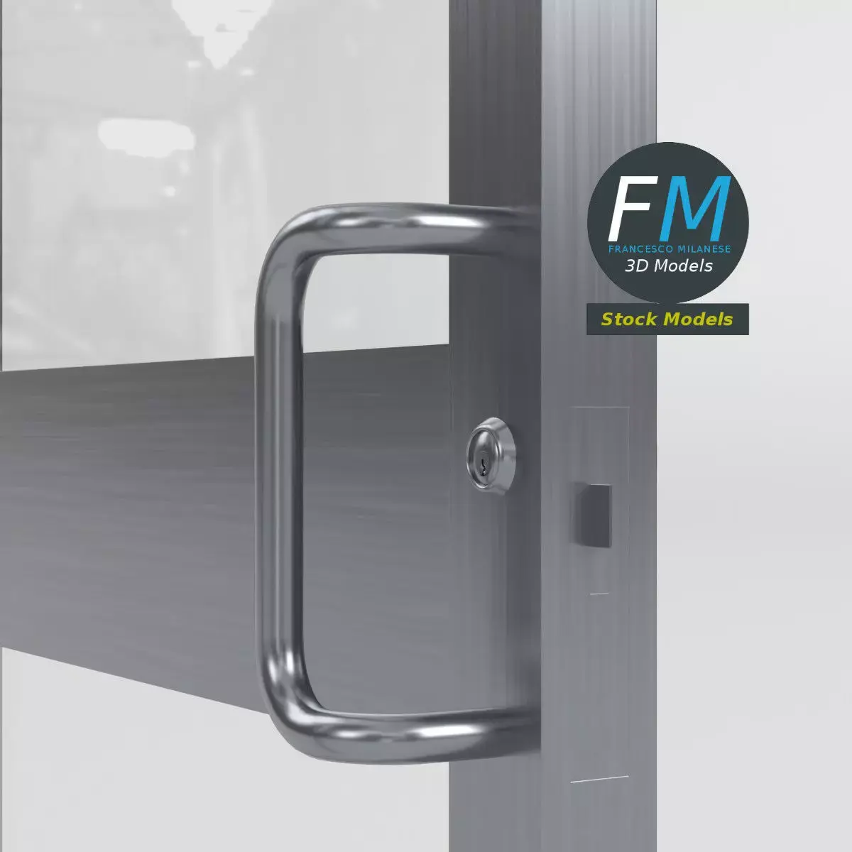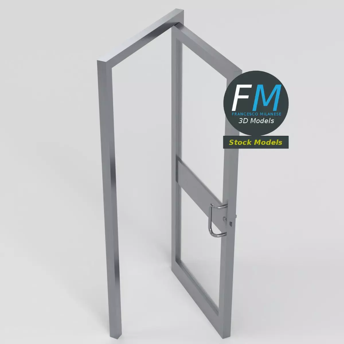 Sleek commercial glass swing door 3D Model featuring a brushed metal frame, full-height clear glazing, and a modern pull handle, ideal for storefronts and contemporary retail interiors. 3 objects (frame, door, glass; so, you can easily open or close the door), sharing 2 Materials (frame, glass), each one with its own non overlapping UV Layout Map and PBR Textures set. Production-ready 3D Model with non overlapping UV Layout map provided in the package. PBR Materials and Textures (Metallic Workflow: Base Color, Metallic, Roughness, Normal) embedded in the Blend, FBX, and GLB files.Easily customizable: UV unwrapped geometries; UV Layout maps provided in the package as png with alpha images.Quads-only geometry.Made with Blender 4.5 LTS with Cycles Principled BSDF (PBR, Metallic Workflow) Material, then exported to other formats (OBJ, FBX, GLB; FBX and GLB have embedded textures).Promo images: some renderings made with Cycles for Blender, plus Wireframes and Blender screenshots (Object Mode, Edit Mode with UVs).Formats included: FBX with embedded PBR Textures (Metallic Workflow: Base Color, Metallic, Roughness, Normal), GLB with embedded PBR Textures (Metallic Workflow: Base Color, Metallic, Roughness, Normal), OBJ; scenes: BLEND (with Cycles Principled (PBR) Materials); other: 16-bit PNGs with Alpha.3 Objects (meshes), 2 PBR Materials, UV unwrapped (non overlapping UV Layout map provided in the package).UV Layout maps and Image Textures resolutions: 2048x2048.Polygonal, QUADS-ONLY, 9174 vertices, 8856 quad faces (17712 tris).Real world dimensions; scene scale units: METERS in Blender 4.5 LTS (that is: Metric with 1.00 scale).Uniform scale object (scale applied in Blender 4.5 LTS).PBR Textues included: in a zipped folder, you'll find the PBR Textures set (as 16-bit PNGs with Alpha).IMPORTANT --- Main renderings made with Blender 4.5 LTS + Cycles using an HDR Environment Texture Image which is NOT provided in the package!