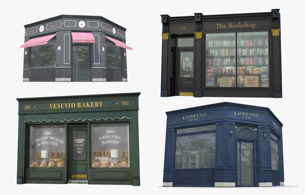 Photorealistic Store 3d Facades Collection