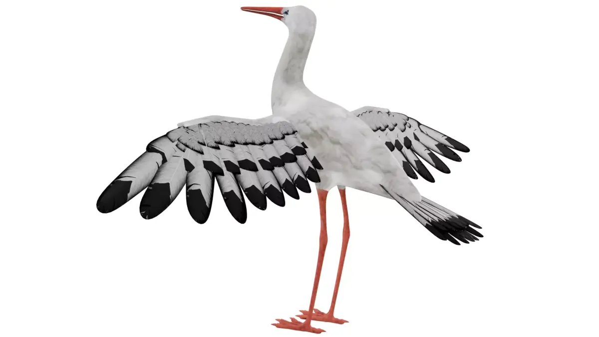 This Stork is a high quality model that will enhance detail and realism to your rendering projects. The model has a fully textured design that allows for close-up renders, and was originally modeled in Blender and rendered with KeyShot.