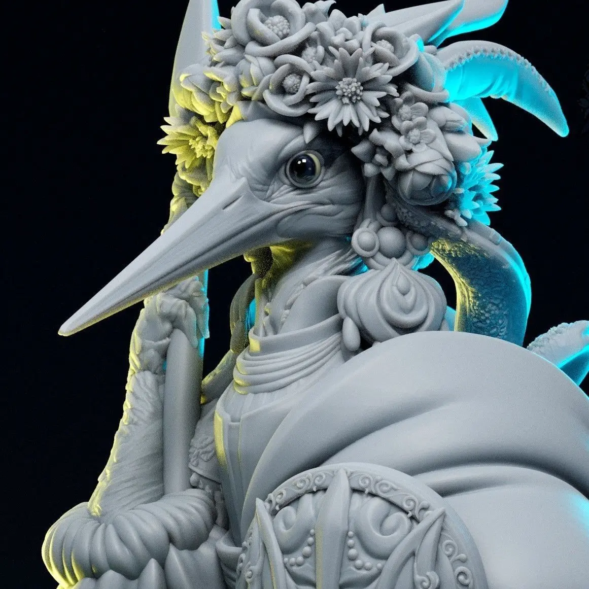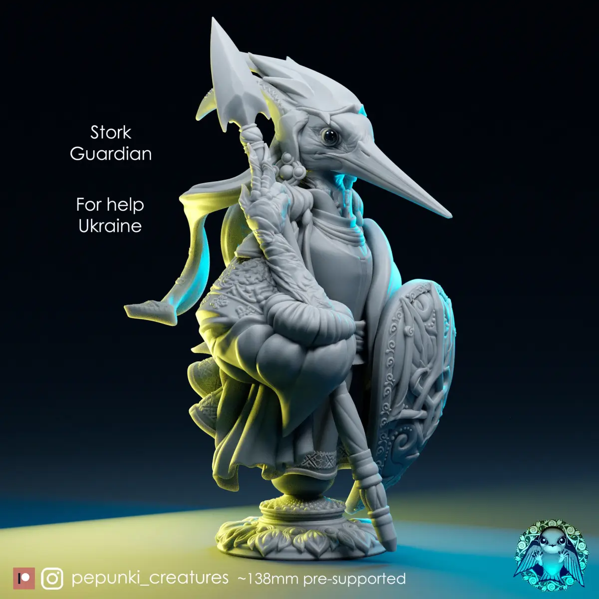 You can read her Patreon post here and download model for free - https://www.patreon.com/posts/stork-guardian-73815151