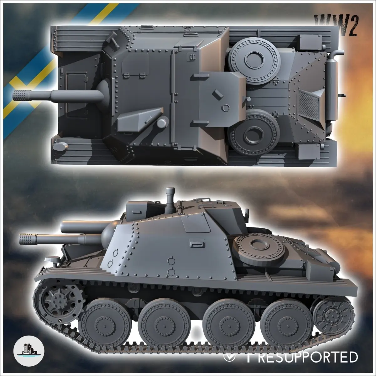 Stormartillerivagn Sav m43 Swedish assault gun - miniatures tabl 3D print model