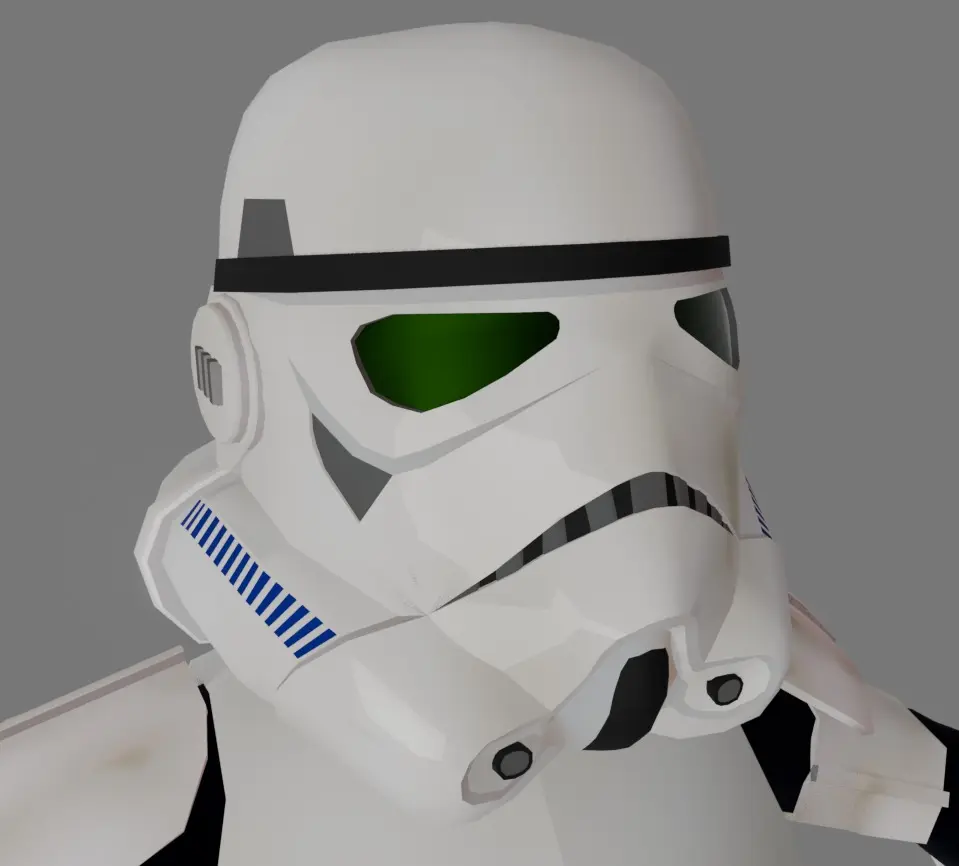 This is a stormtrooper. The material it has simulates dirt in the armor, but just disable that from the material for a cleaner look. Plus it has the E-11 blaster (Hands Problems)