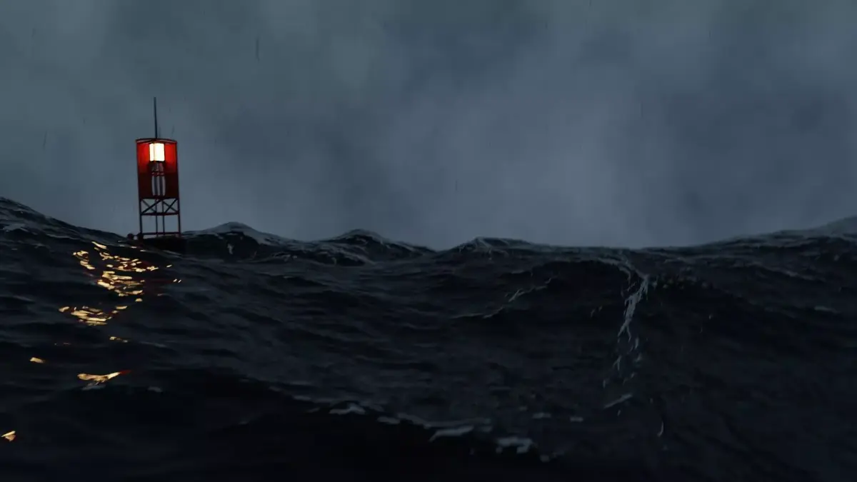 3D animation of stormy ocean, 3d model created using a blender, content includes: