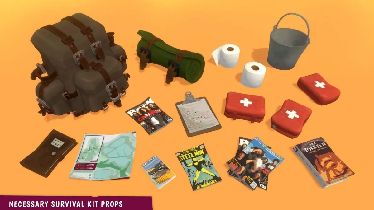 - Survival: 4 backpacks, sleeping bag, 3 medipacks, 2 pills bottle variations, 2 toilet paper rolls, bucket, canoe, paddle, lighter, matchbox, matches, pack of cigarettes, ashtray, ammobox
