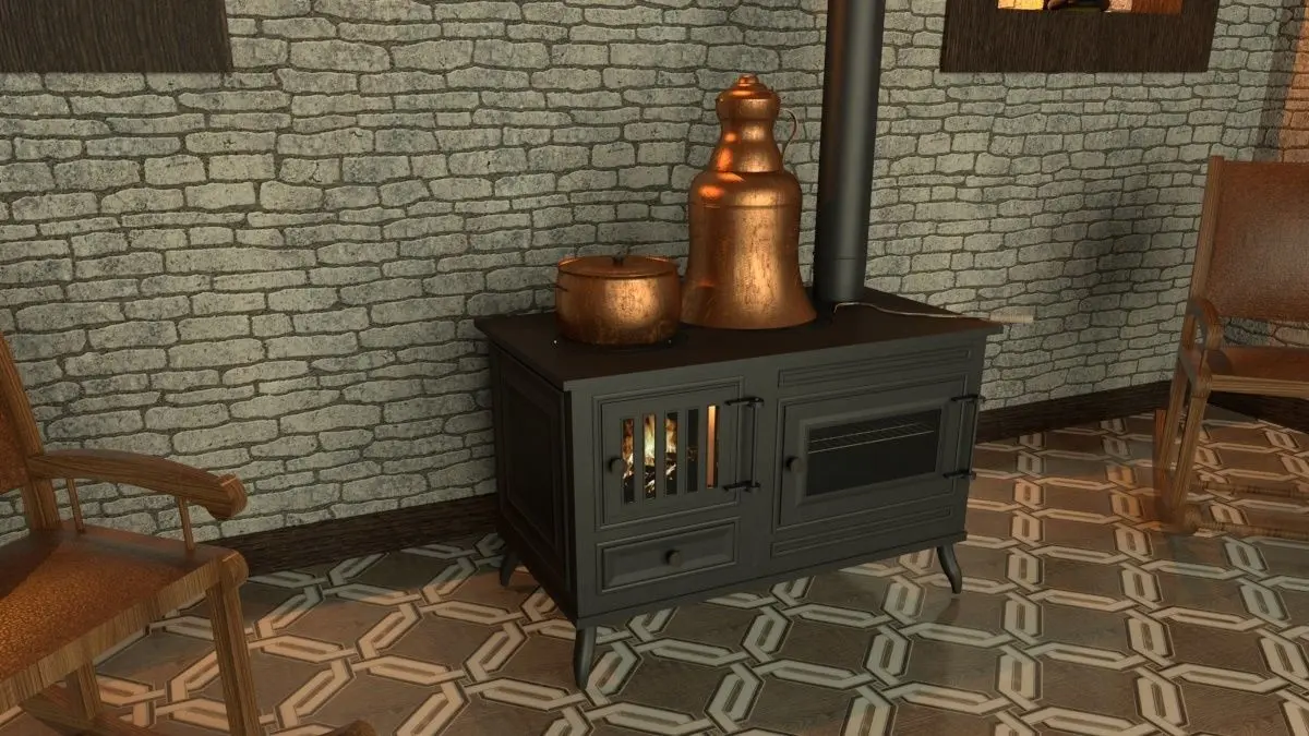 Stove model. In this model file, there are pots and pitchers along with the stove. It is covered with copper material. The stove is covered with cast iron material. The stove has fire, ashtray and oven sections. In Turkey, this stove kuzine is called. It is a very functional stove. You can use the model in your desired project, game or movie scenes. Thank you for your interest. Please do not forget to like and comment.Thanks...