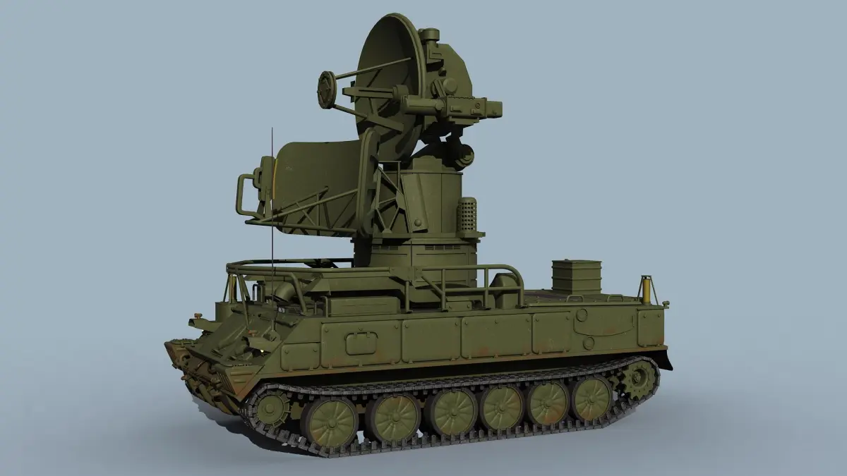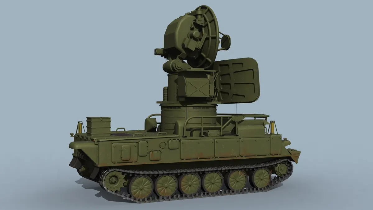 Detailed model of SA-6 surveillance and guidance radar "Straight Flush". The model is real-world scaled. All parts are hierarchically linked, have corresponding names.