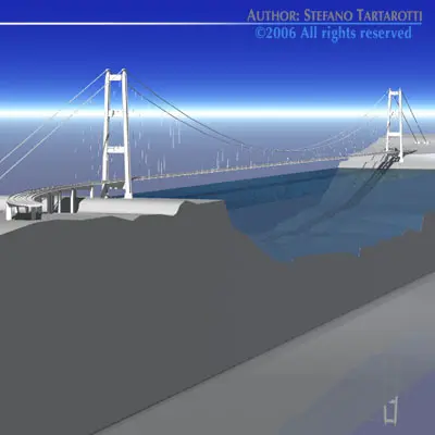Presently all has been accounted for except the economics. To avoid the problem of the deep water, the solution was to design the longest suspension bridge ever. It will have a 3300 m (2 mi) main span and 180 m (590 ft) side spans (overall length 3.7 km(2.5 mi)). The main piers will be founded in 120 m (400 ft) of water. There will be a new patented lighter deck design which deals with aerodynamic and seismic problems. The wind will be no problem as the aerodynamic features of the bridge will allow it to withstand 216 km/hr (134 mi/hr). Earthquakes will have to be huge as the bridge will be able to face without damage a seismic action corresponding to 7.1 magnitude in Richter scale (severer than the earthquake that destroyed in Messina on 1908). The only obstacle left is the funding. The bridge is expected to cost five billion dollars and take eleven years to build.