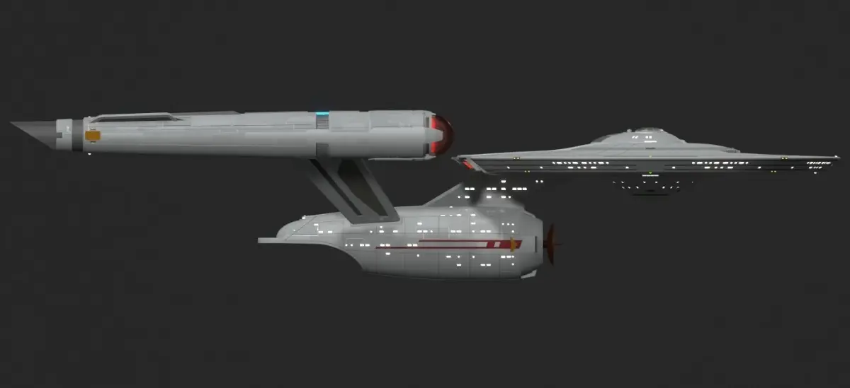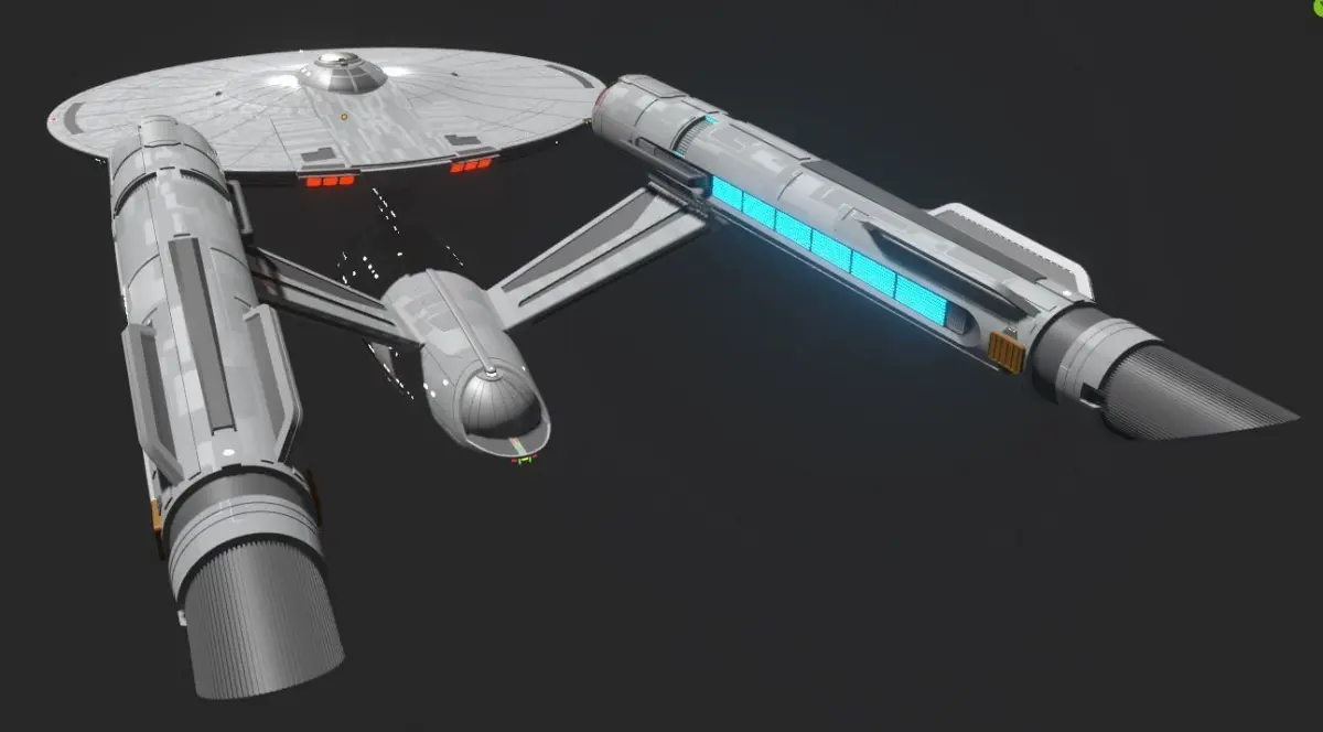 My own version of the strange new worlds constitution class, i envisioned it as a sort of interim refit idea for when kirk got it. it loses the intense grey azteccing while keeping the subtle reflective panelling specular layer. allthough i did experiment with the aztecc panelling it looked a bit too intense for what i wanted it to look like. ill update the model eventually but im happy with where its at currently