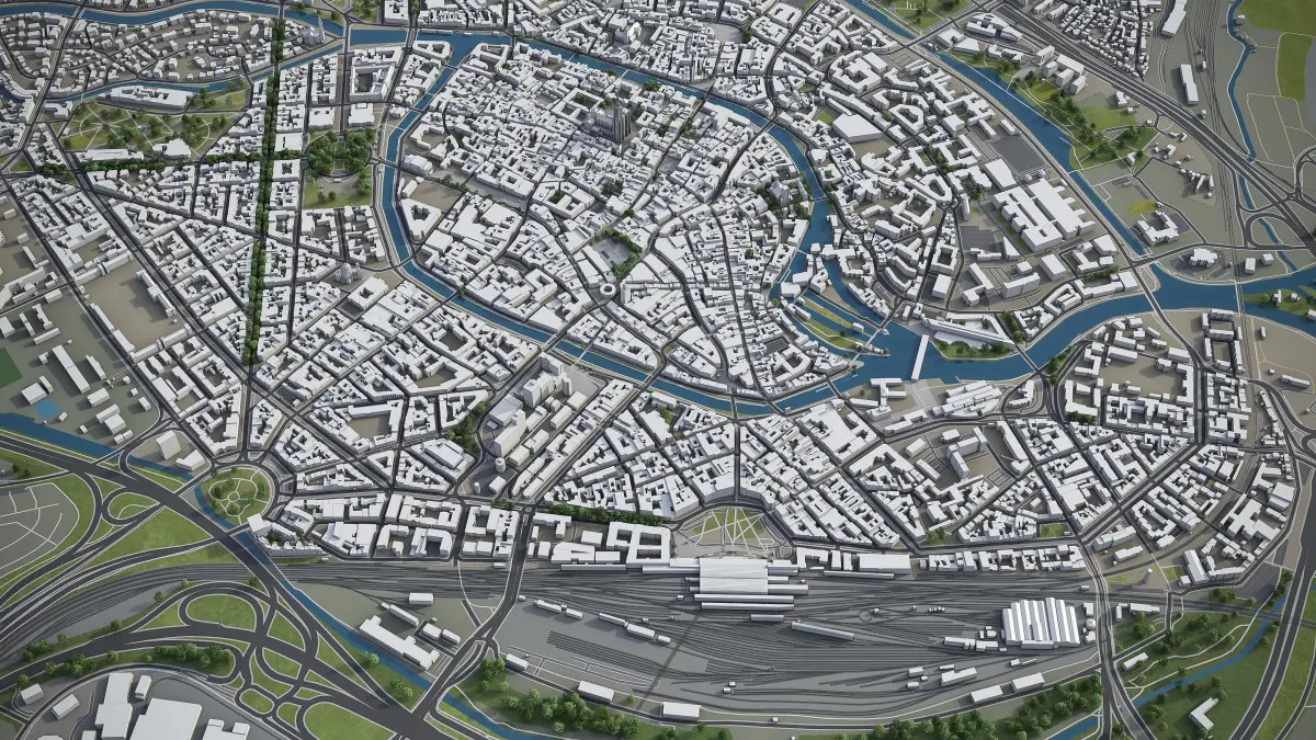 - Full city extents up to 100 x 100 km — or crop to the area of interest for better format compability and scene performance
